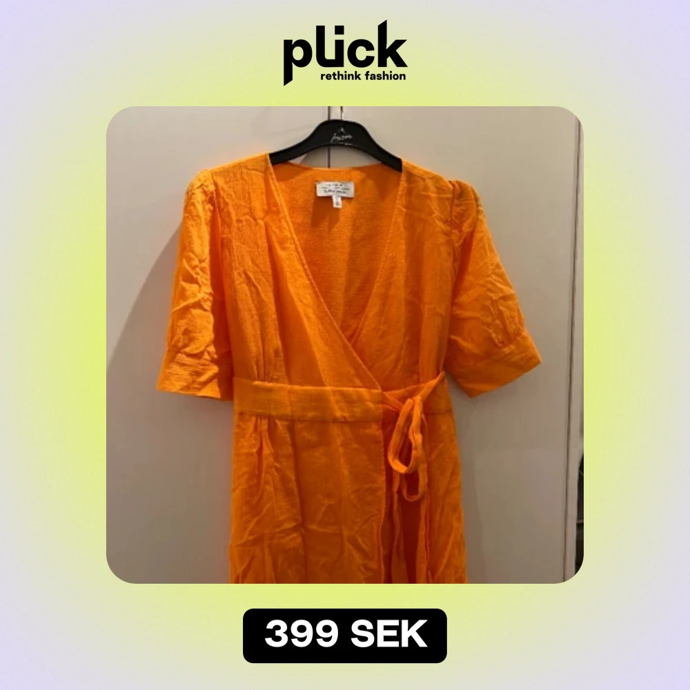 Superfin klänning som passar perfekt till sommaren, älskar färgen men den är för liten för mig. Den är storlek 38 men skulle säga att den sitter mer som en storlek 36🧡