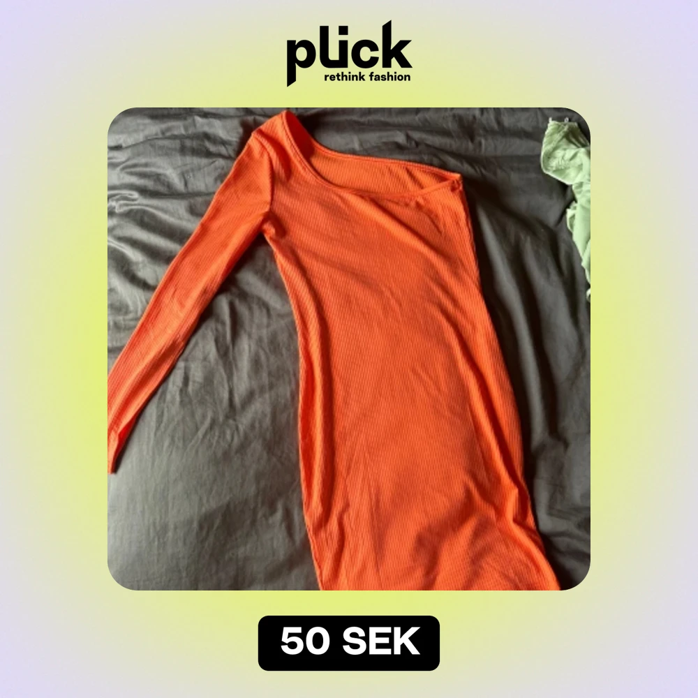 En orange ribbad klänning med långärmad design. Klänningen har en tight passform och är tillverkad i ett bekvämt material. Perfekt till neon fest