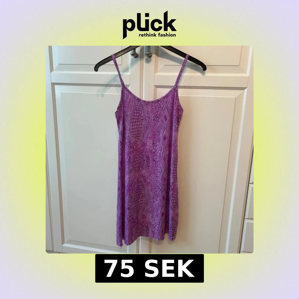 Säljer en lila kortklänning med ormmönster från Fashion 100. Klänningen har en figurnära passform i strl s