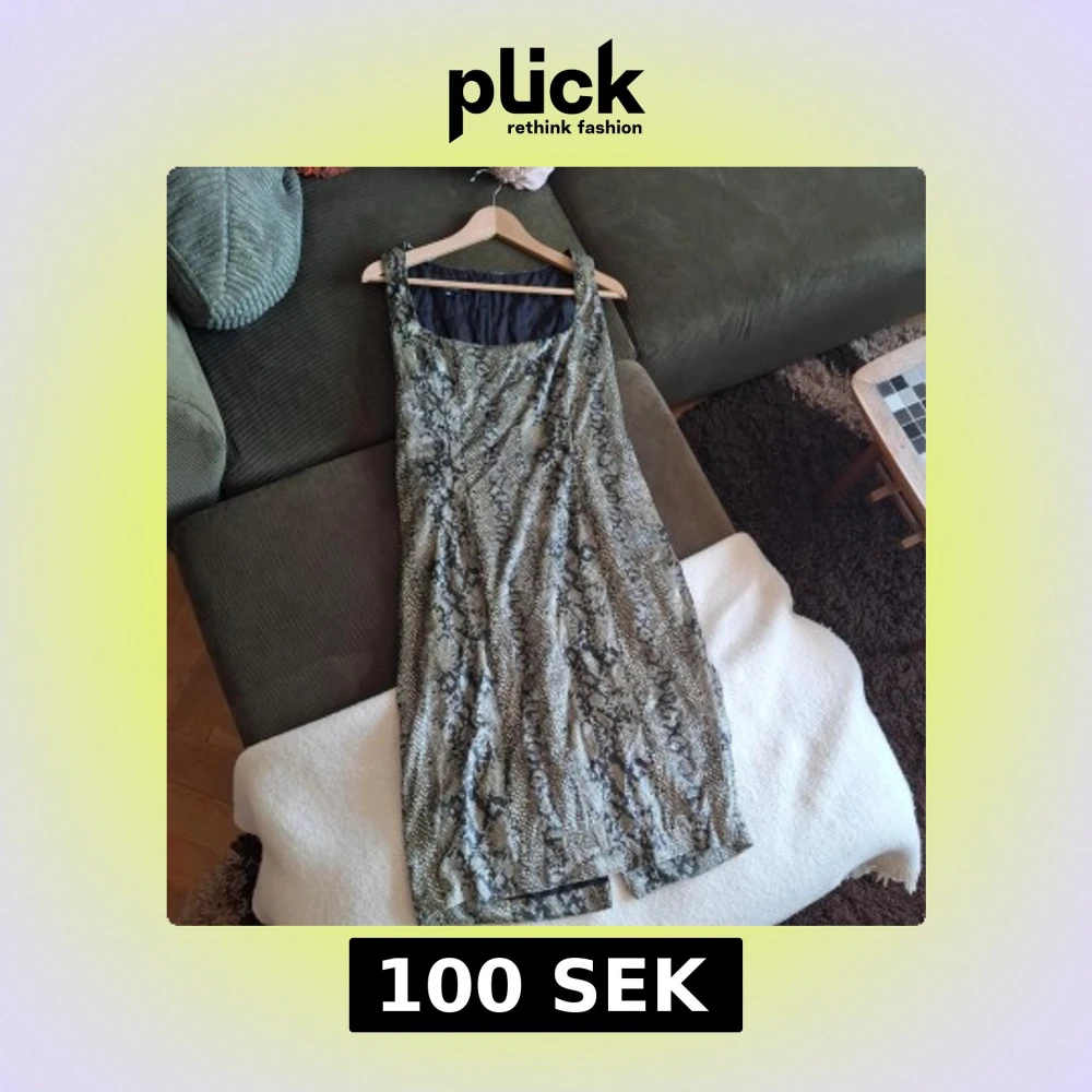 Supersnygg ormskinnsmönstrad klänning, tyvärr fyller jag inte ut den i urringningen längre. Men innan dess har denna vara en riktig pangklänning för mig! Slitsen är lagad där bak.