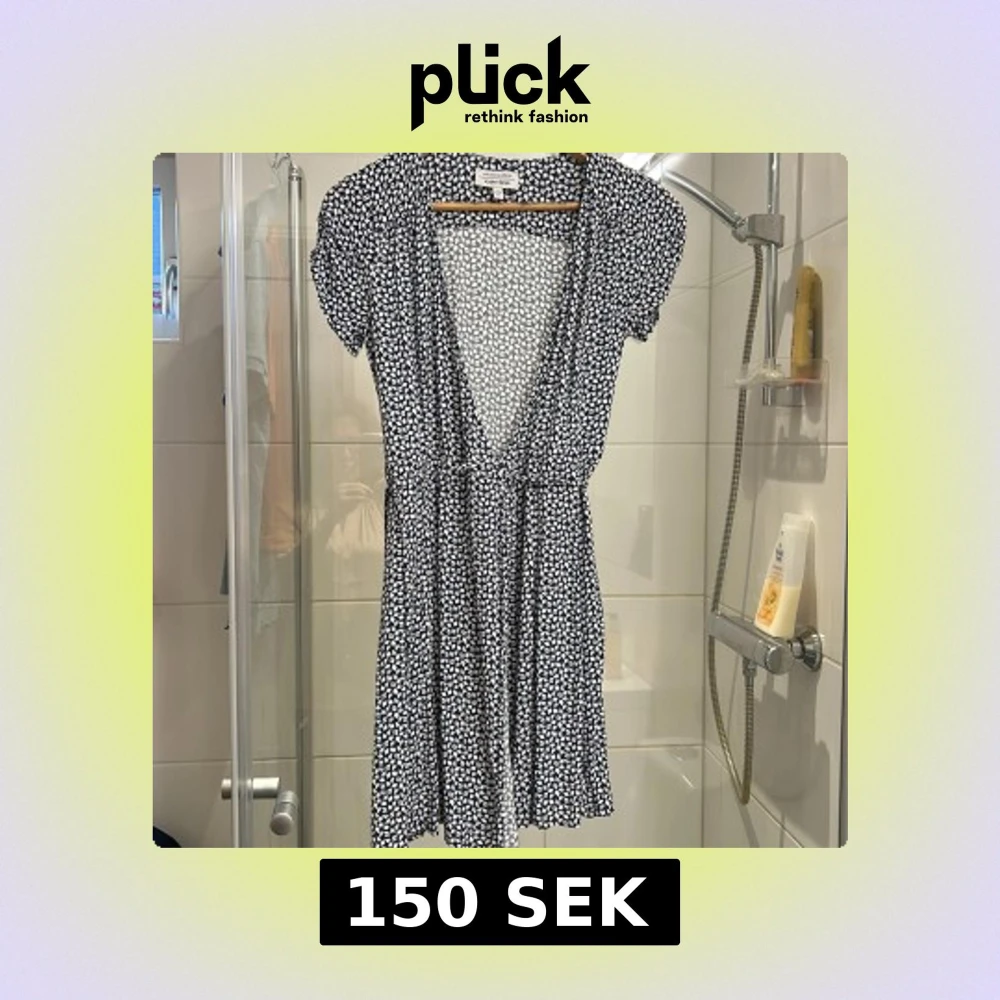 Söt klänning med ett hjärtmönster i svart och vitt från & Other Stories. Den har en v-ringad design och korta ärmar, perfekt för en somrig look. Klänningen är i en lätt och luftig stil.