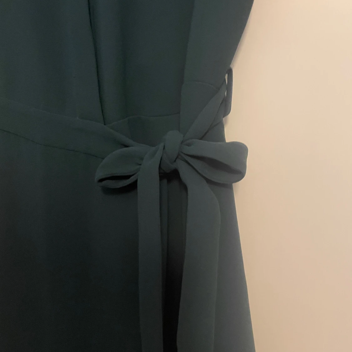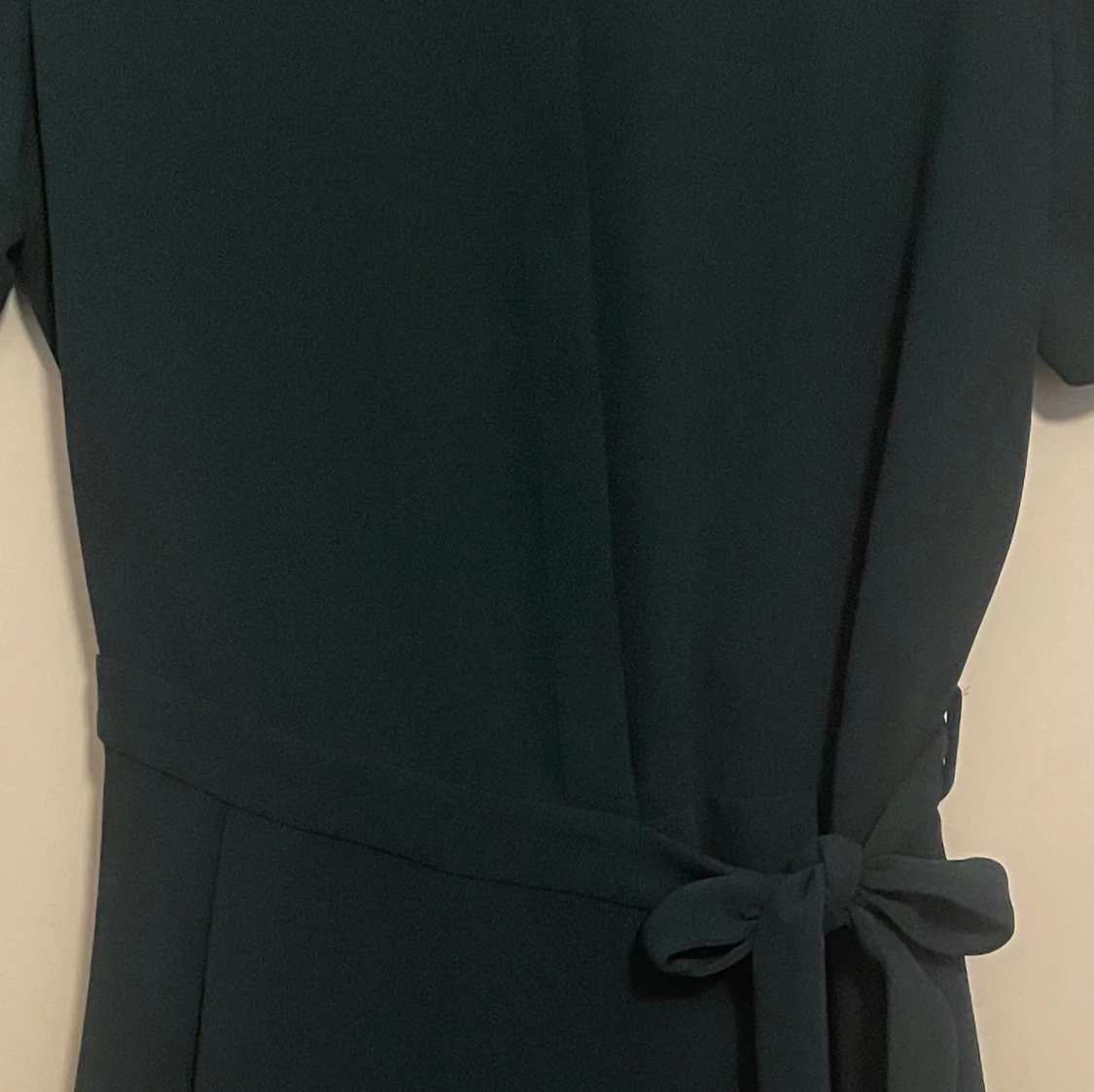 Stilren mörkgrön klänning från & Other Stories med korta ärmar och knytband i midjan. Klänningen har en rak passform och är tillverkad i ett mjukt, slätt material. Perfekt för dig som gillar minimalistisk och klassisk stil.
