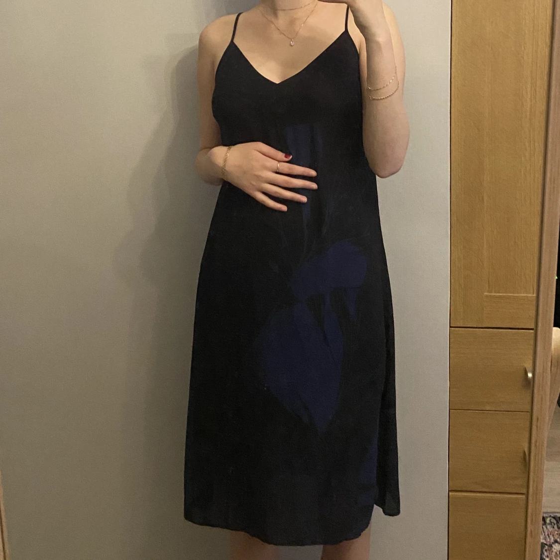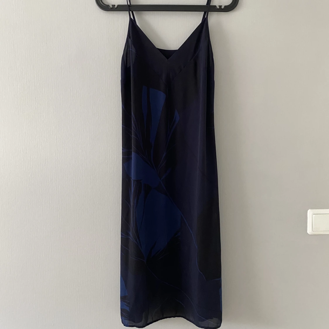 Säljer denna mörkblåa blommiga klänningen från Oysho :) Fungerar som en slip dress, strandklänning eller bara som en vanlig sommarklänning. Väldigt fint skick💖