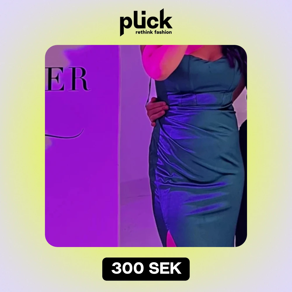 Jättefin grön satinklänning som endast har använts 1 kväll. Passar väldrig bra för sig som kanske har bal eller ett kommande bröllop och inte har hittat en fin och elegant klänning ännu:) Kemtvättad ( fläcken är vatten! )