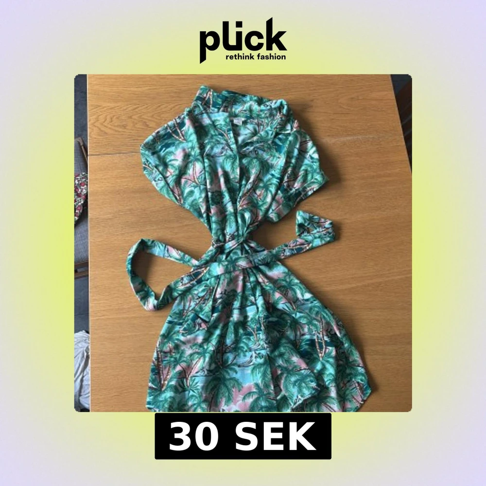 Superfin kortklänning från Monki med tropiskt palmmönster i grönt, blått och rosa. Omlottmodell med knyt i midjan❣️❣️ Strl S!!❣️❣️