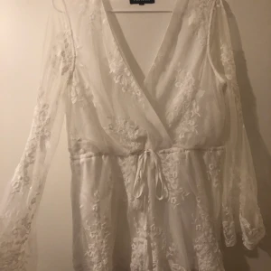 Fin jumpsuit endast använd ett par timmar, snörning i midjan där man kan dra åt. Genomskinliga armar resterande har vitt tyg innanför. Storlek 40, skickas mot att köparen betalar frakt.