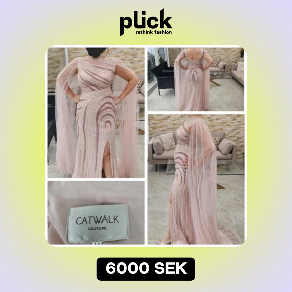 En kroppformad Klänning av jättesmå fina pärlor med långa armar av Catwalk märke . Materialet har bra kvalite, använd bara några timmar. Köpte för 7800kr.