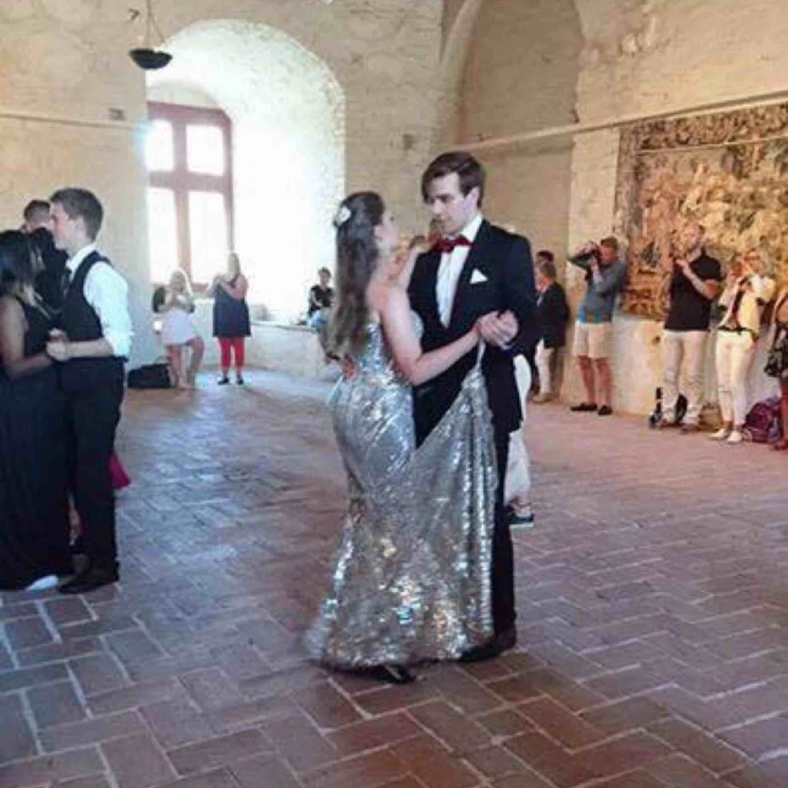 Säljer nu min fina balklänning. Storlek XS men anser att även S skulle kunna ha denna. Består av paljetter och pärlor vilket gör att den väger något kg.
