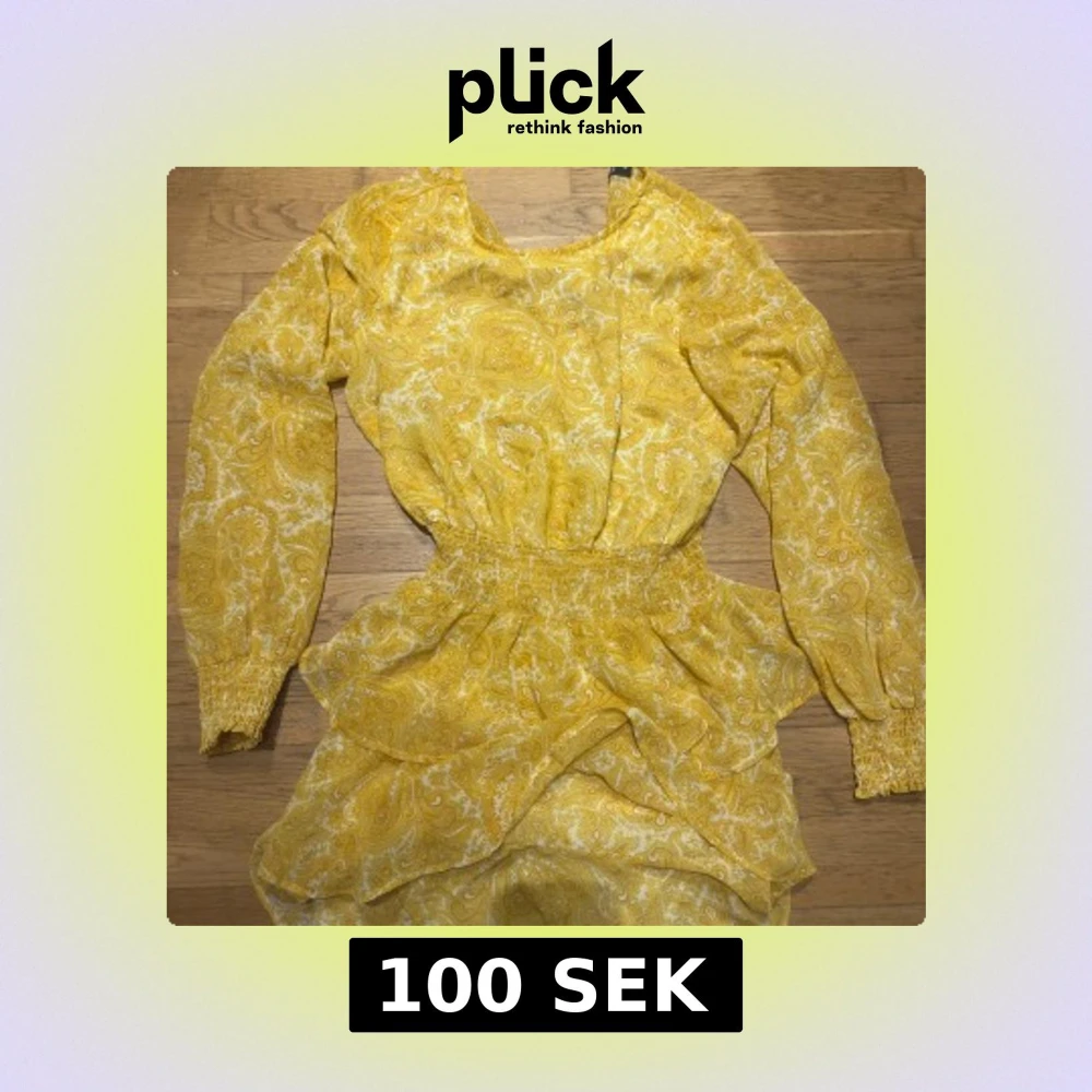 Säljer en solig gul klänning från Gina Tricot med ett vackert paisleymönster. Klänningen har långa ärmar och en elastisk midja för en bekväm passform. Perfekt för vår och sommar!