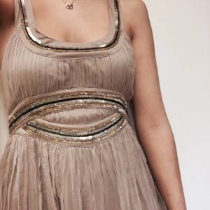 Helt ny festklänning med fina detaljer på. Dragkedja på sidan. Passar storlek M, 38
