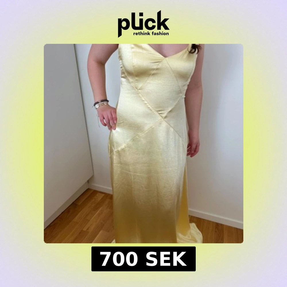 Elegant gul långklänning från BUBBLEROOM i ett satin. Klänningen har en v-ringad design och smala axelband. Den är figurnära. Har inte använt den en enda gång. Den är 150cm lång från axeln ner. Som referens är jag 161cm