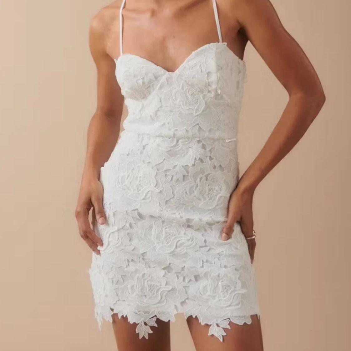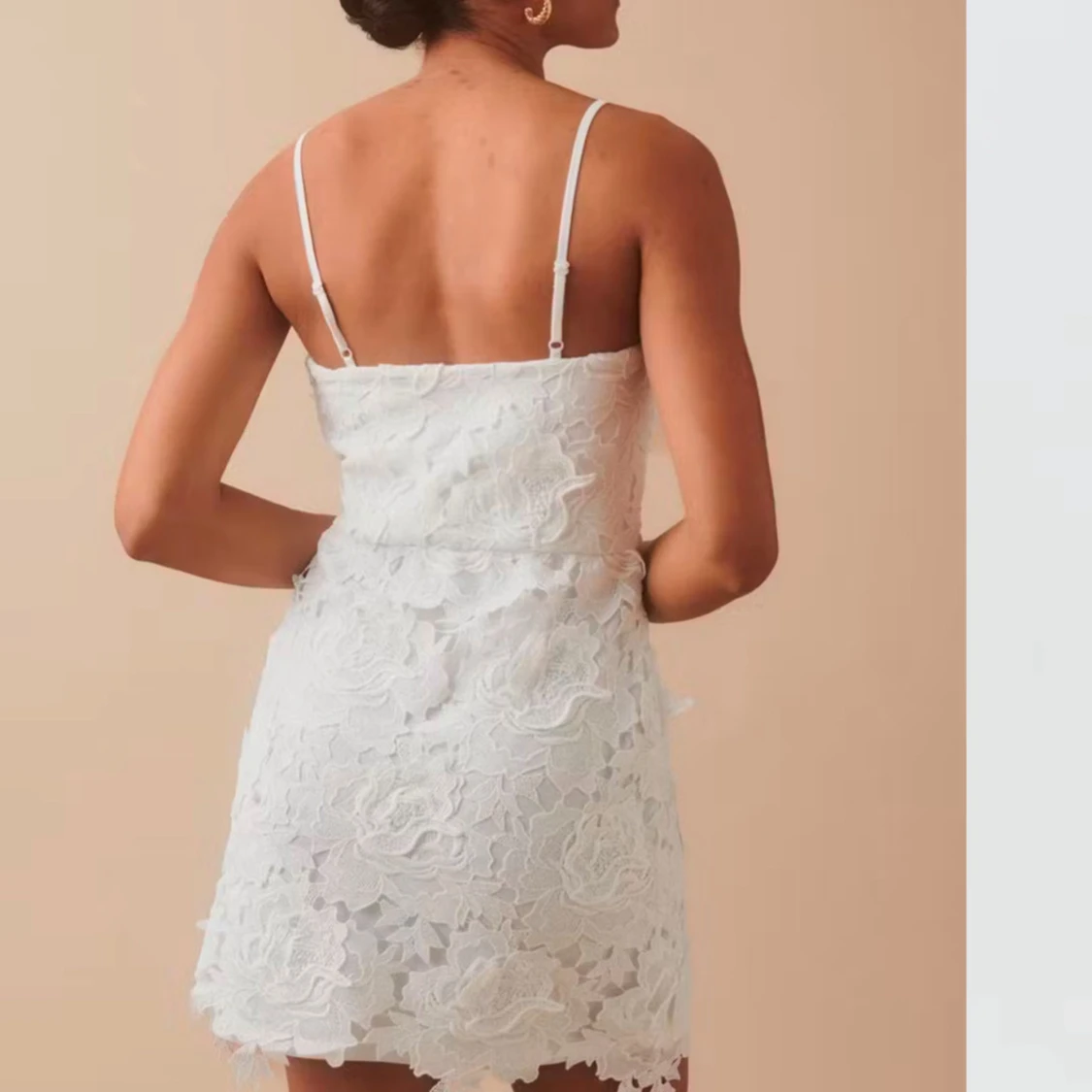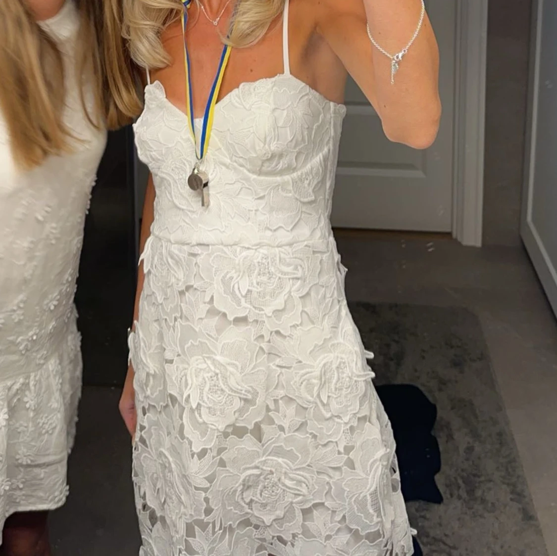 Vit klänning med spets. Perfekt för dig som tar studenten. Använt den endast en gång på studenten och är helt som ny. Storlek xs. Köpt för 699kr och säljer för 500kr, köpare står för frak🤍🤍