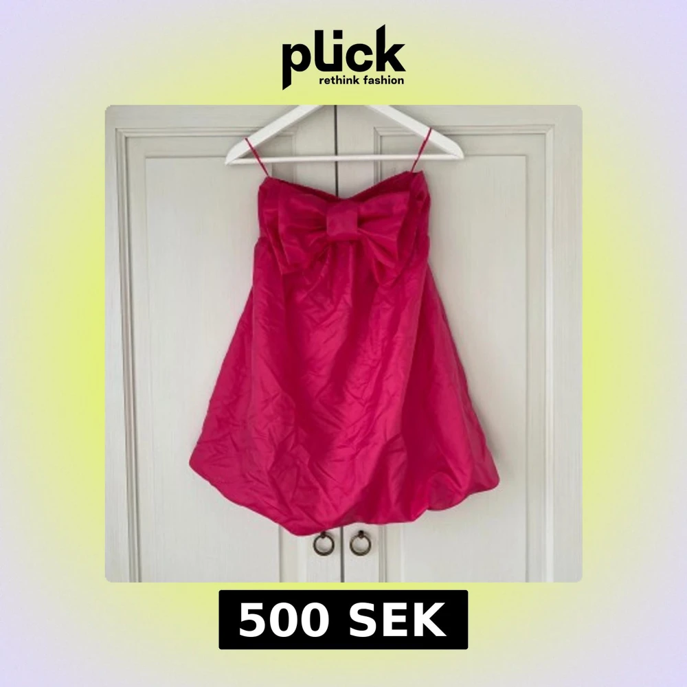 Supersöt rosa kortklänning som är axelbandslös och med stor rosett framtill. Ballongformad nederdel och smockad rygg. Endast annvänd en gång så jättebra skick🌟 Hon på sista bilden är 170cm, passar även kortare och lite längre. Perfekt nu i sommar!