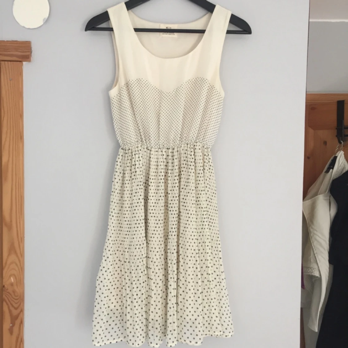 Superfin prickig klänning med en pliserad kjol & naturligt fall. Fint skick. Står storlek S men funkar lika bra till XS också! 100kr +frakt
