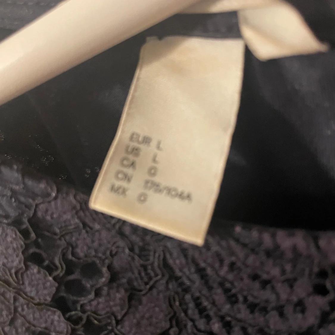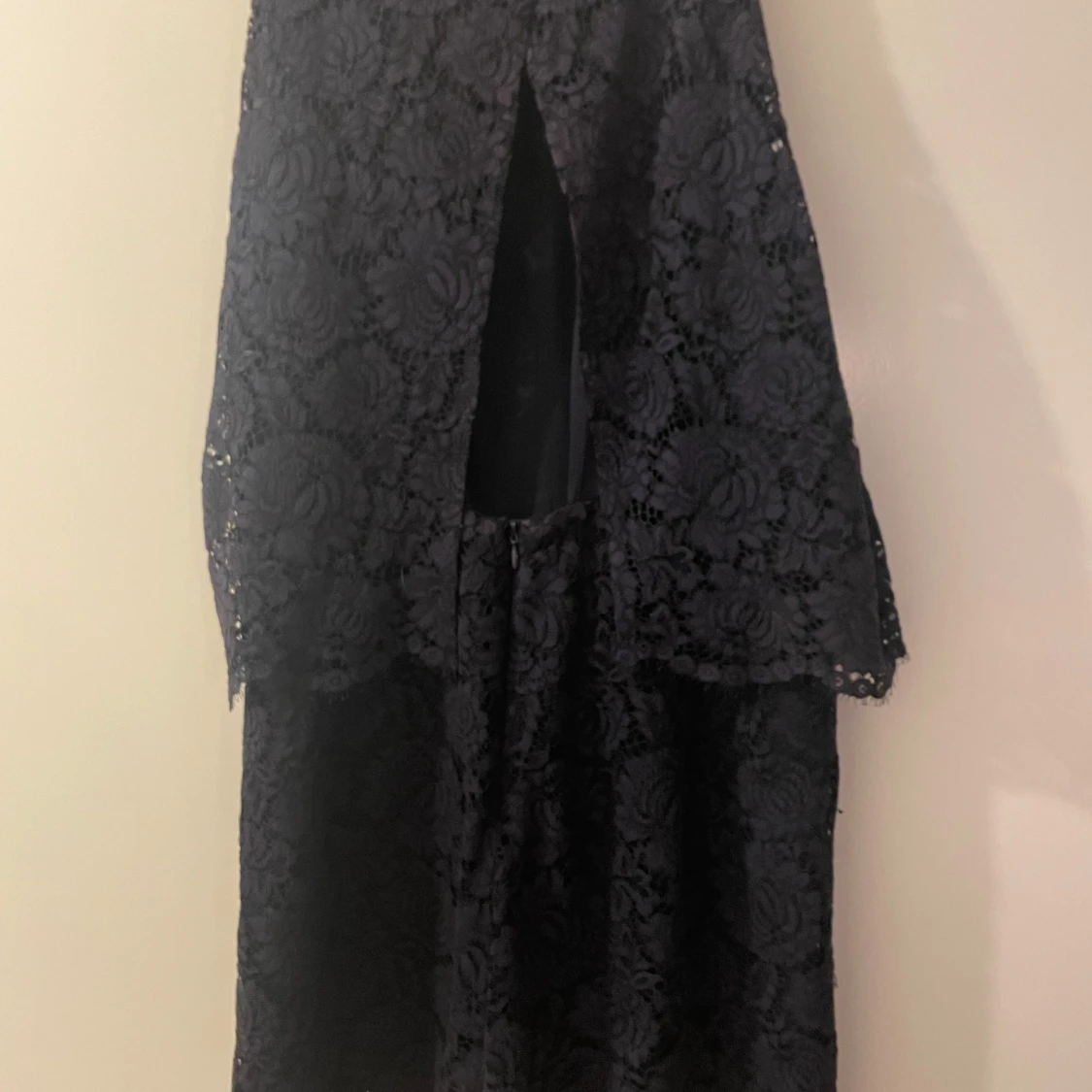 Snygg playsuit från HM i marinblå spets. Fodrad och i bra skick. Stl: L Nypris: 398 kr