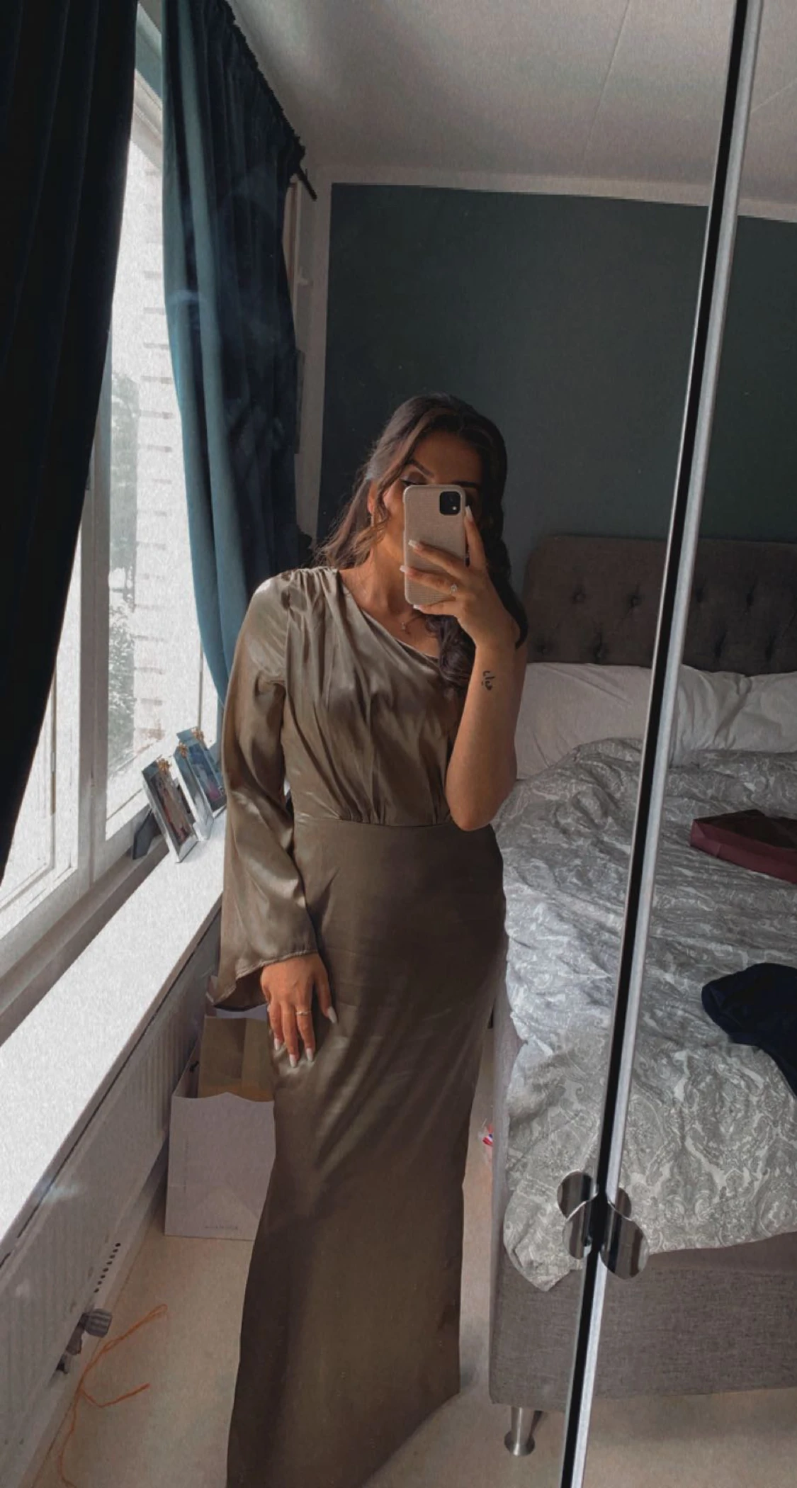 Klänningen är lite uppsydd, jag som är 165cm kan ha den med 10cm klackar och den når golvet. Endast använd vid 1 tillfälle