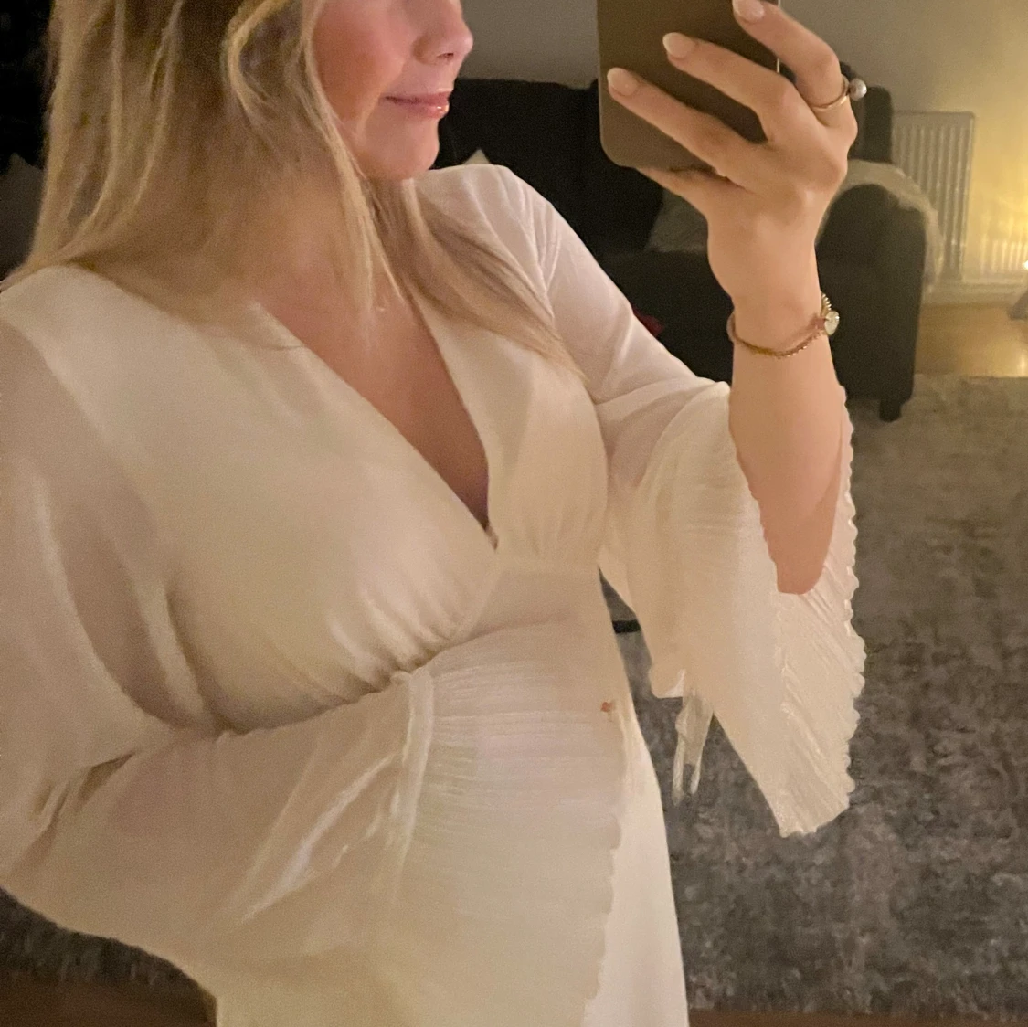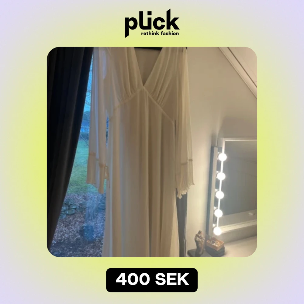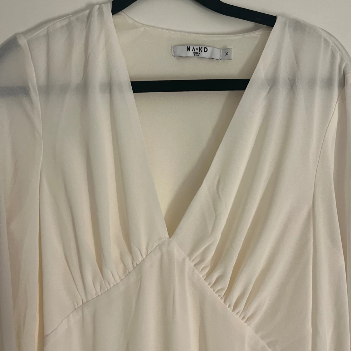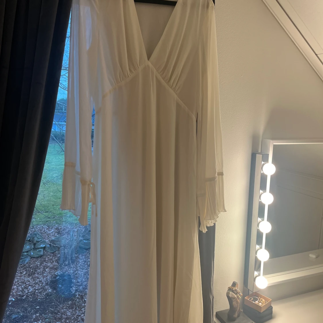 Vit klänning från nakd i storlek 36, använd en gång och är som ny. Perfekt till sommaren lång och detaljer i ärmarna.