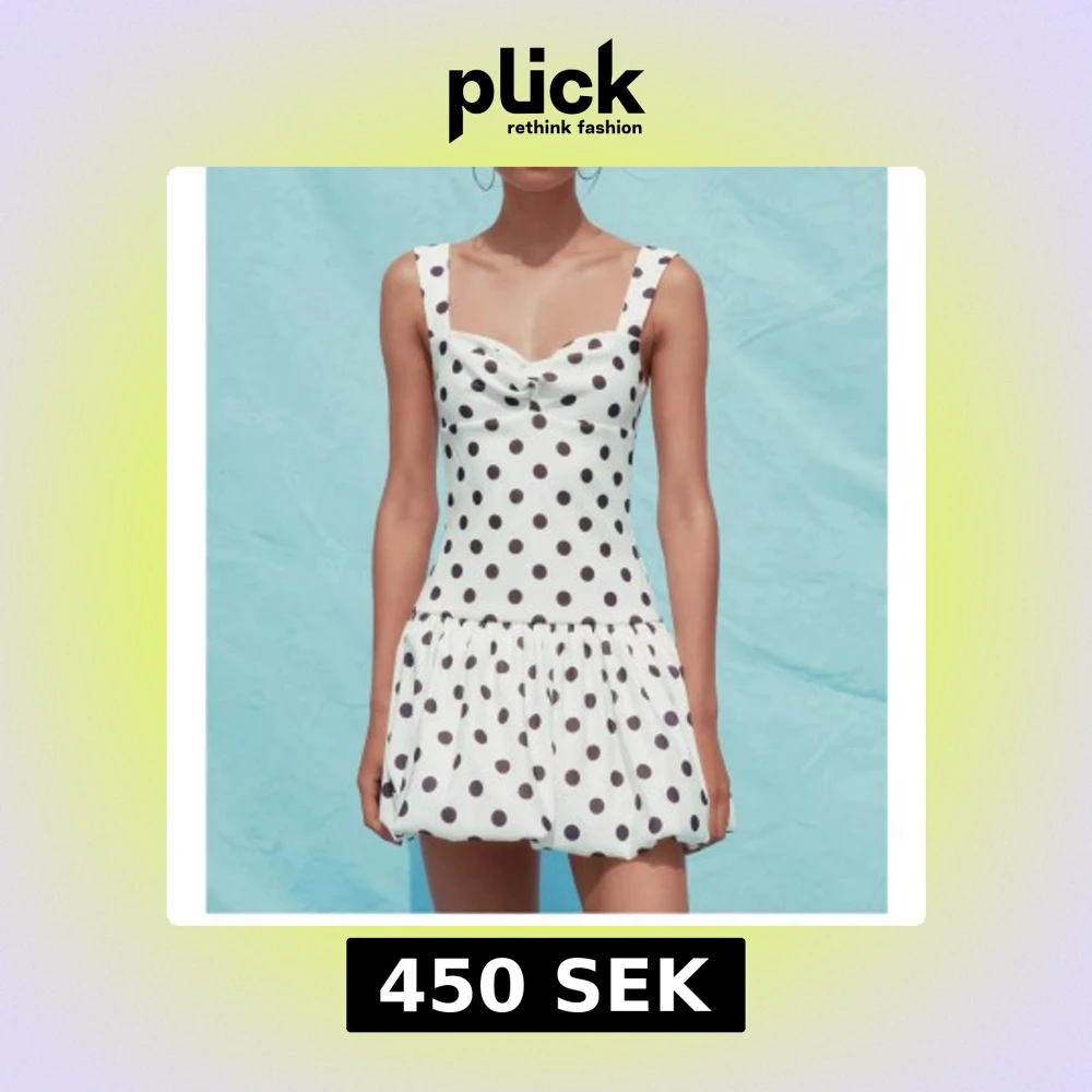 Supersöt vit kortklänning med stora svarta prickar och breda axelband. Klänningen är helt ny med lapparna kvar! Så populär och dessutom slutsåld på Zaras hemsida. Köp för 450kr eller alternativt byta mot en L🖤🤍