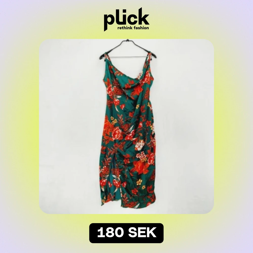 Grön klänning med slits och röda blommor i satin. Köpt för ett bröllop, aldig använt den igen 😢