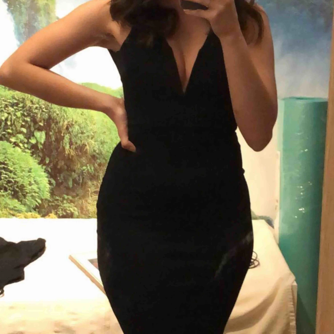 Supersnygg figurformad aftonklänning i svart med urringning och öppen rygg! Endast använd 1 gång och inga smutsfläckar in sight