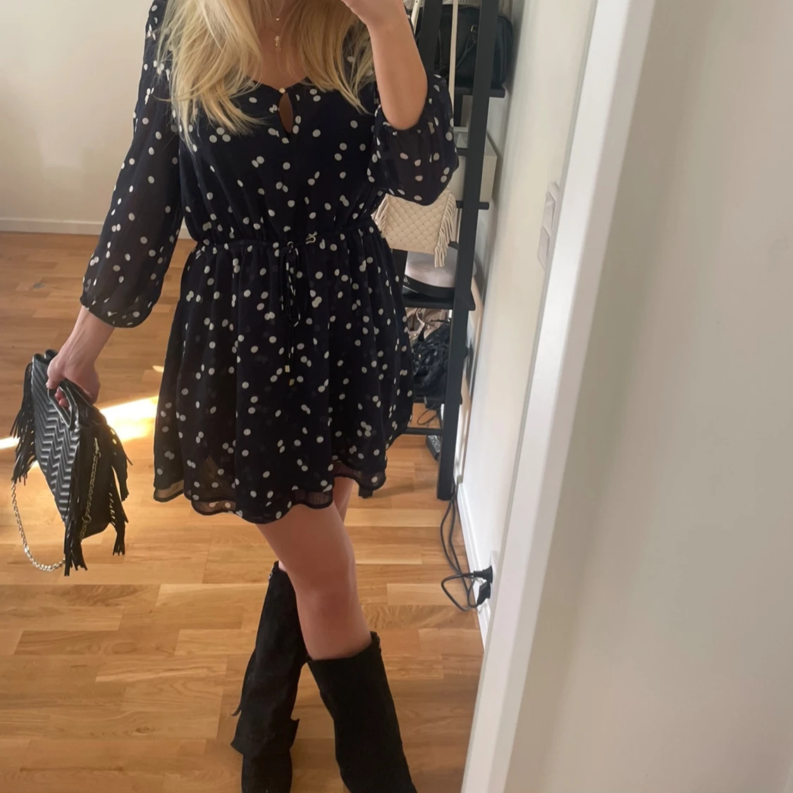 Superfin klänning från Holly & Whyte by Lindex i storlek small💕Superfin med svarta accessoarer och tights!💋 Klänningen är lite kortare, passar för de som är 175 och under, jag (på bilden) är 172. Klänningen är i ett begagnat men omhändertaget skick.