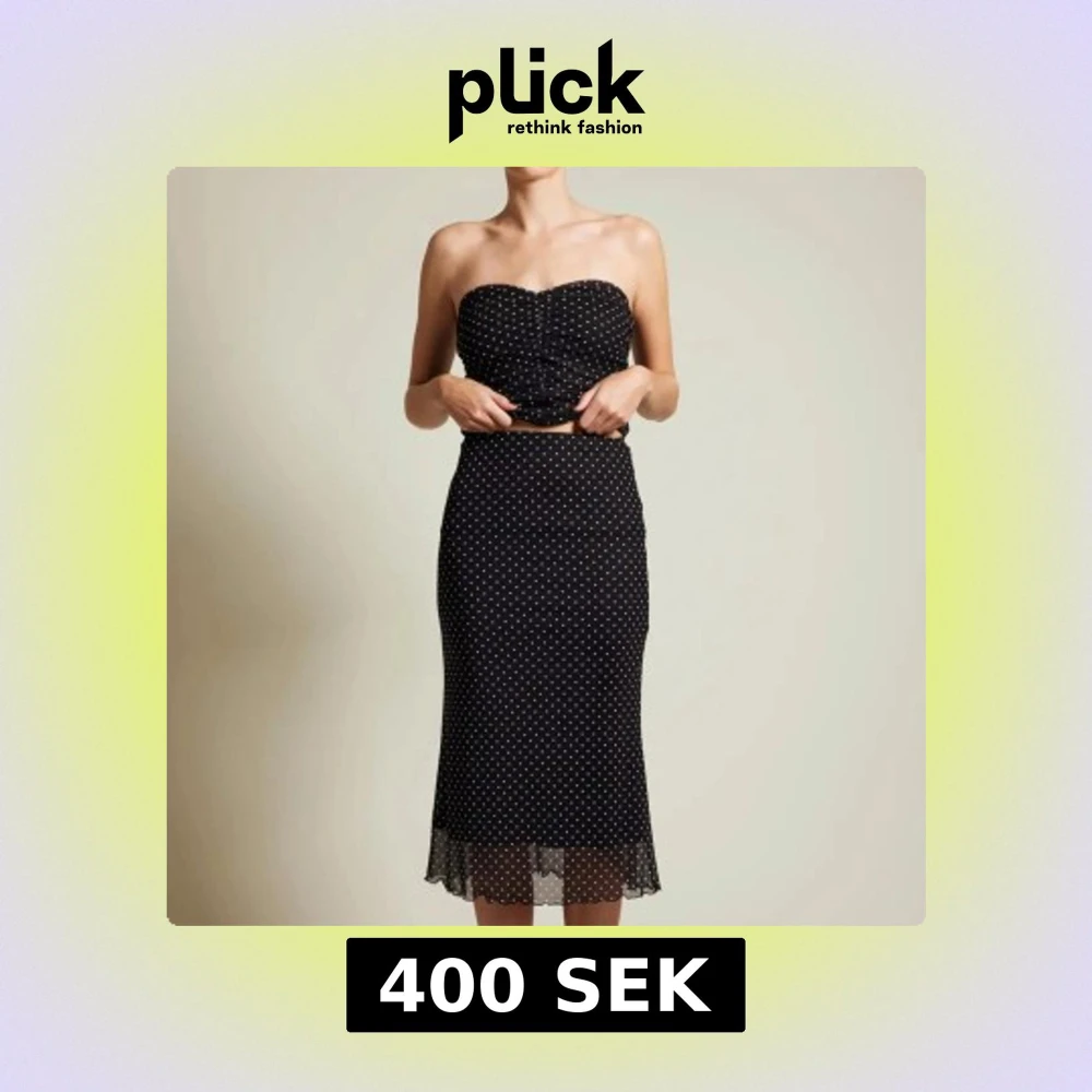 Säljer toppen och kjolen som ett det. De är svarta med vita prickar. Använd 1 gång i somras. Storlek XS i toppen och S i kjolen, nypris för båda tillsammans är 618kr🌸