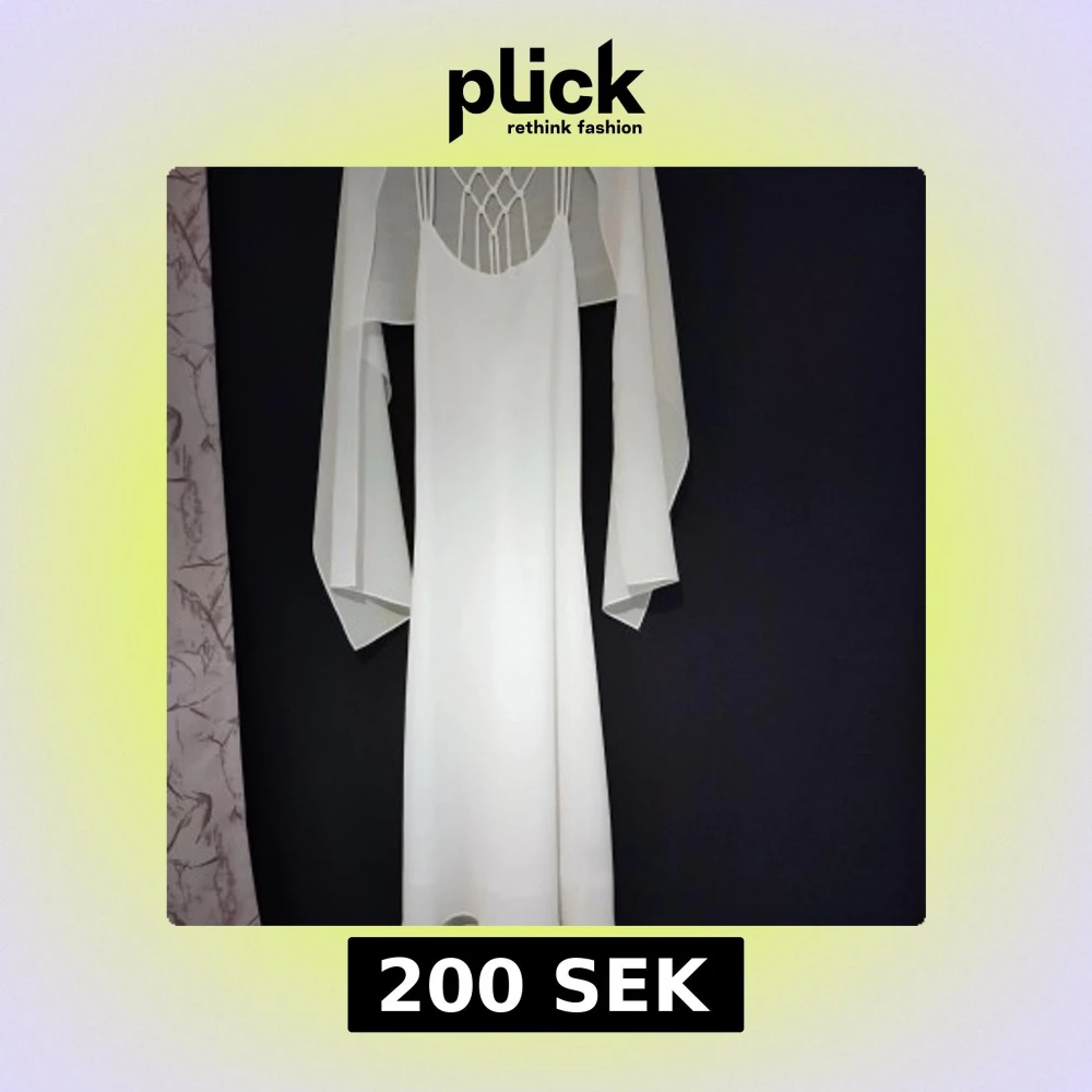 Offwhite långklänning från Prima med tunna axelband och snyggt nätmönster upptill på baksidan. Den har en elegant och flowy siluett som ger en riktigt stilren look. Längd 125 cm. Både klänningen och sjalen är tillverkade i 100% polyester.