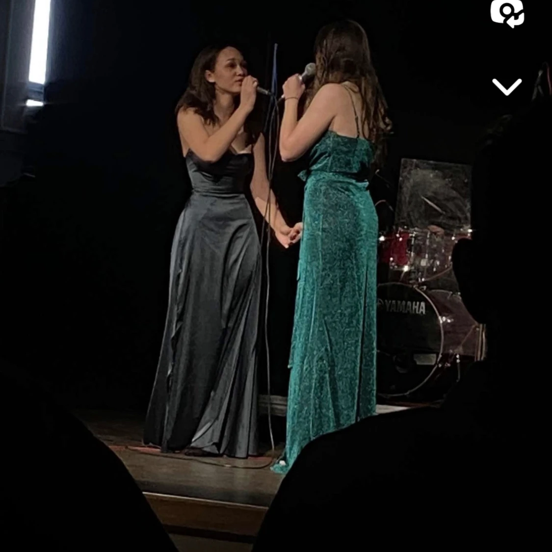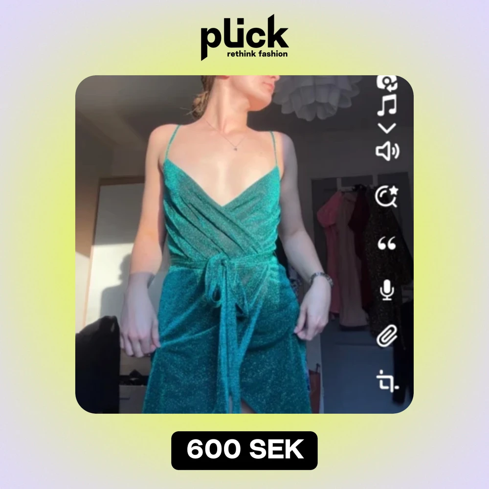 Otroligt fin smaragdgrön glittrig klänning, använd endast en gång på en familjekonsert🥰fick många komplimanger! Kan spännas vid axelbanden!