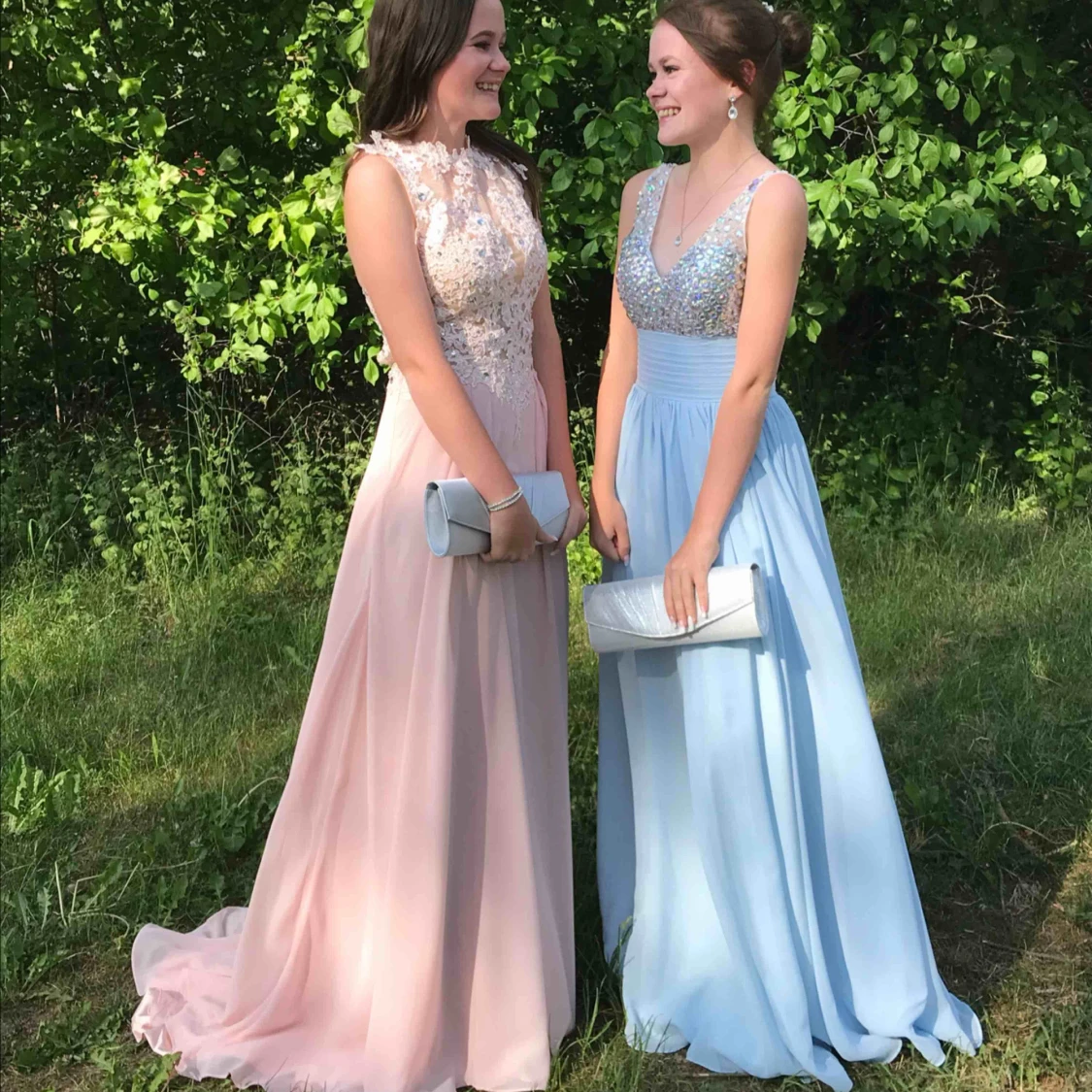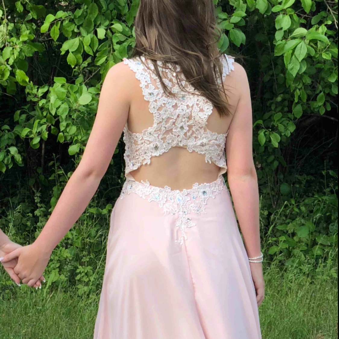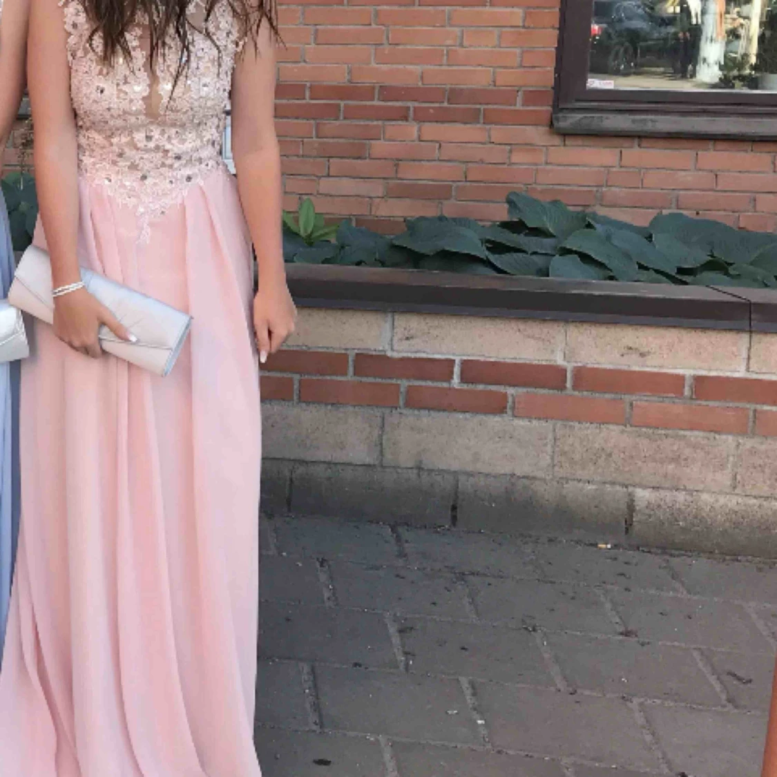 Säljer min rosa balklänning som är använd en gång. Klänning passar mig perfekt med ett par klackar o jag är 168 cm. Klänningen har ett kortare släp och fin rygg. Den har även kuddar för brösten inbyggt i klänningen för att man ska kunna vara utan bh.