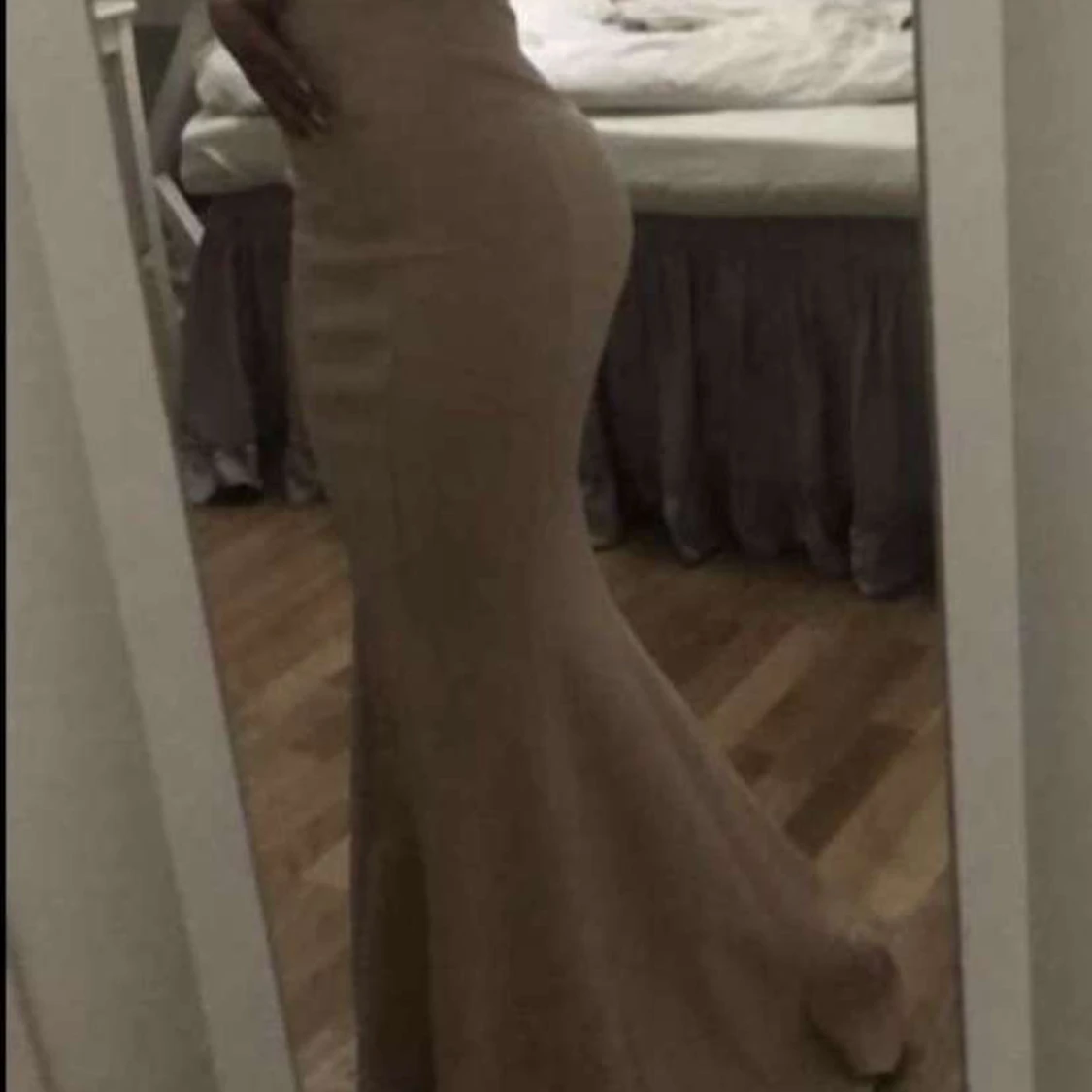Helt ny balklänning som aldrig kom till användning. Den är off shoulder med en snygg detalj, den är sjöjungfruformad så den är tight upptill sen vid benen går den ut