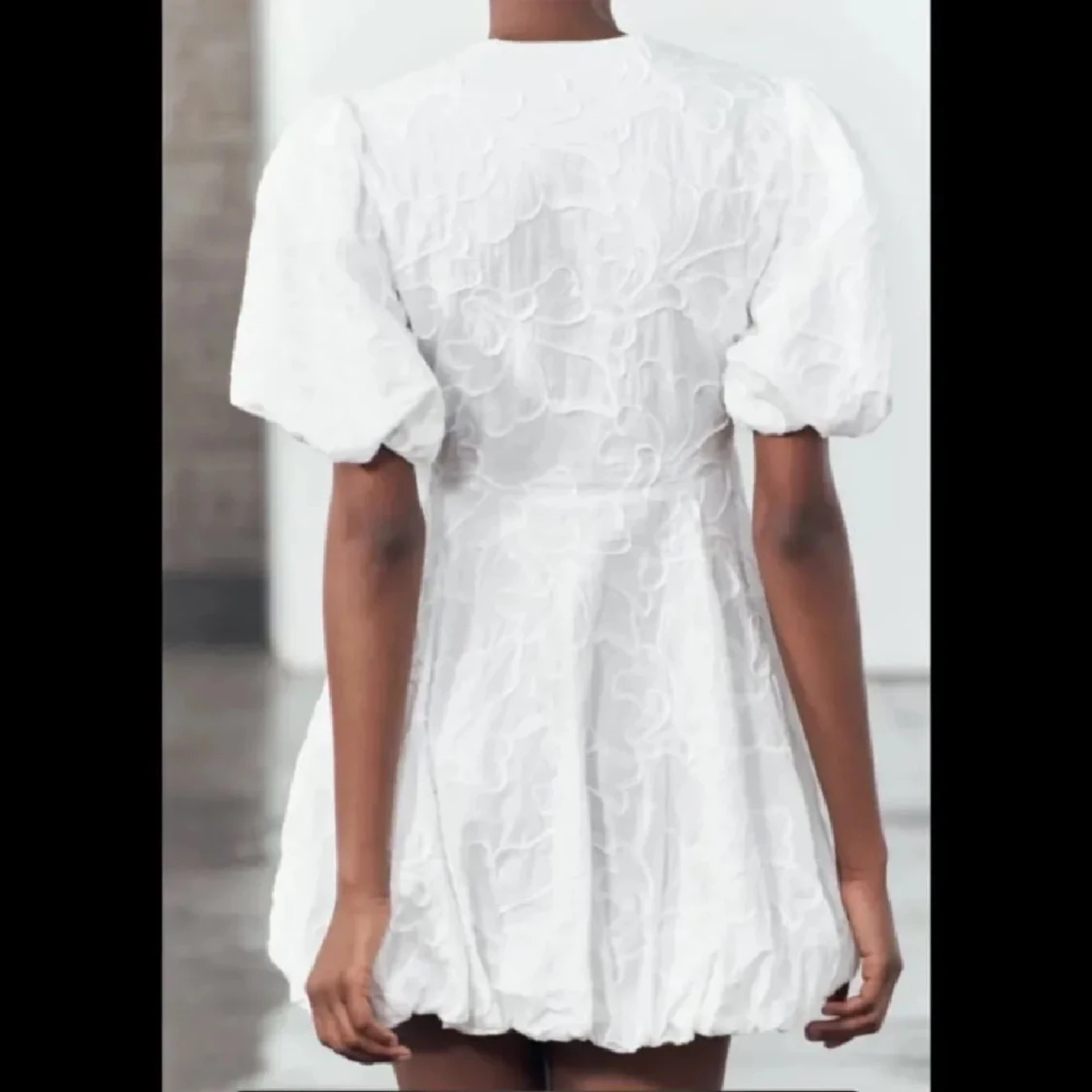 Ny ZW COLLECTION WHITE VOLUMINOUS PUFF BUBBLE DRESS WITH EMBROIDERY SIZE S. Säljer denna helt slutsålda och eftertraktade Zara klänning, från förförra årets kollektion. Superfin och sitter perfekt. 100% bomull, ny med etikett