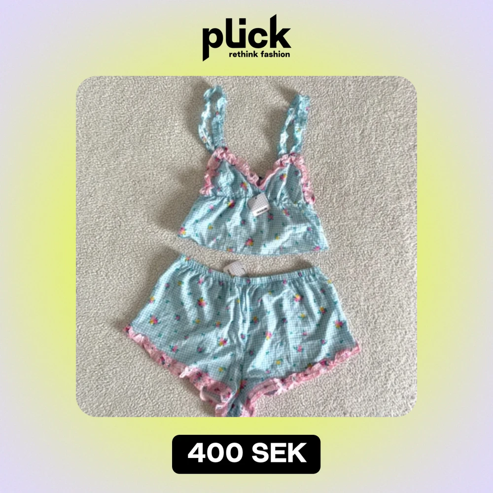 Otroligt vackert gingham-rutigt pyjamasset med blommor från Tezenis. Storlek L i shortsen och S i toppen. Nytt med tags kvar, utan anmärkningar.