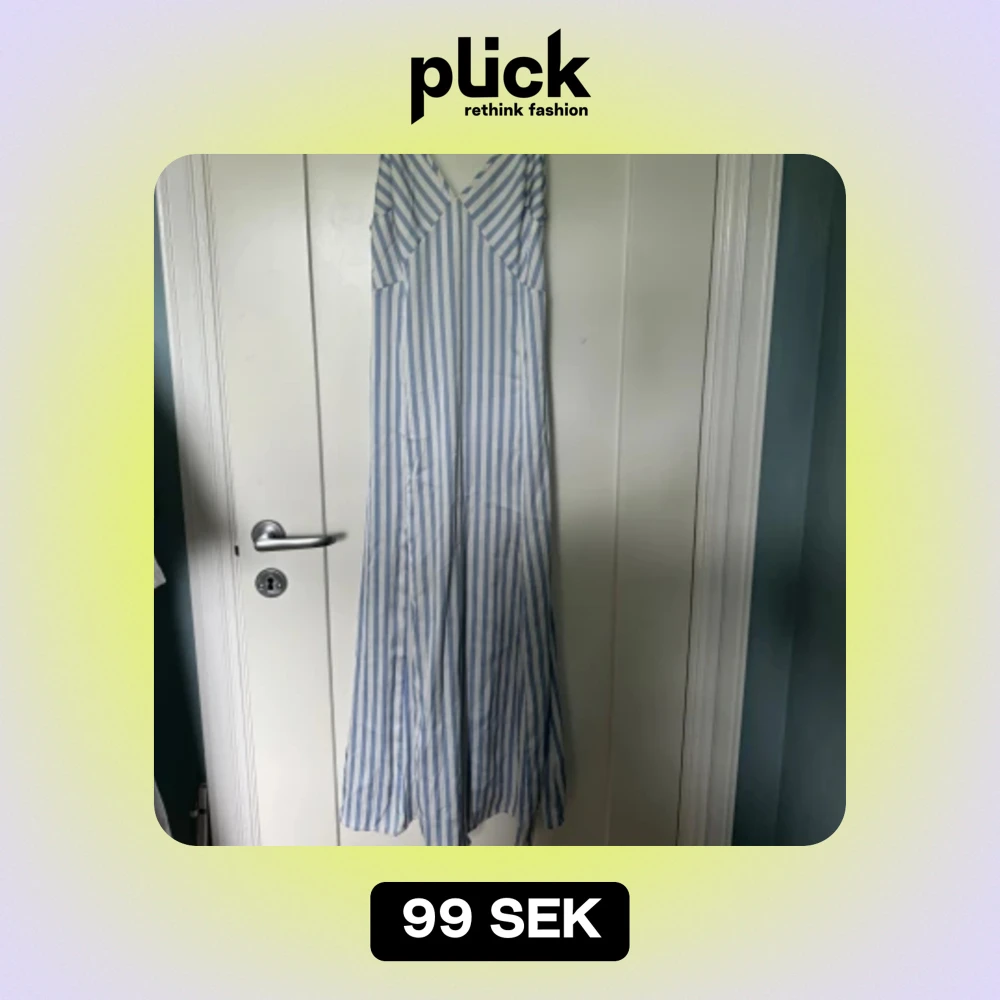 Denna klänningen är köpt på Plick, men aldrig använd av mig då jag fick hem fel storlek annars är den jättefin