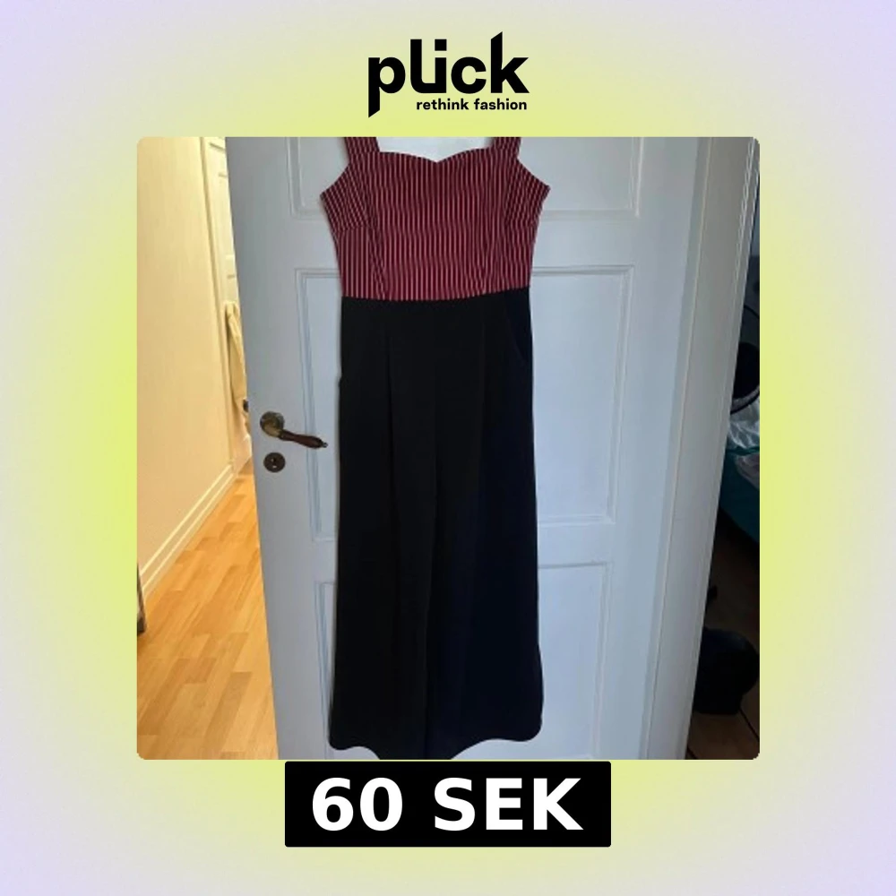 Snygg jumper med breda axelband och röd- och vitrandig överdel. Kjoldelen är helsvart och har en rak, elegant passform. Jumpern har en markerad midja och dragkedja i ryggen. Perfekt för dig som vill sticka ut med en cool och stilren look.