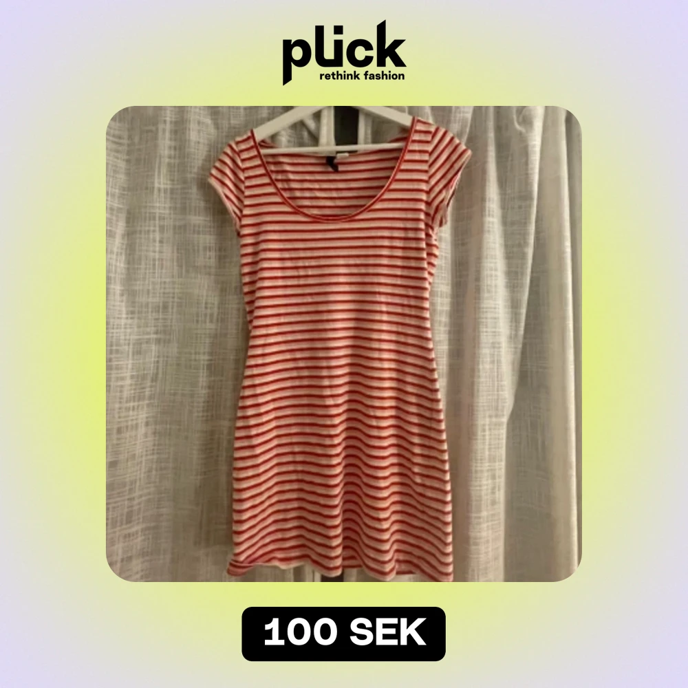 En randig klänning (rosa, röd, vit) från hm divided. Storlek 38 och väldigt stretchig, typ t-shitrt material.