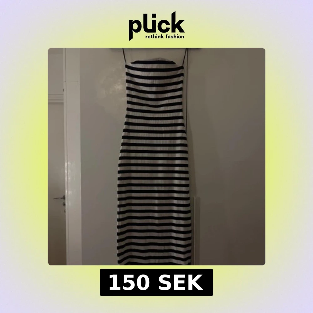 Säljer en lång, randig klänning Klänningen har slits baktill. Materialet är ribbat och stretchigt.