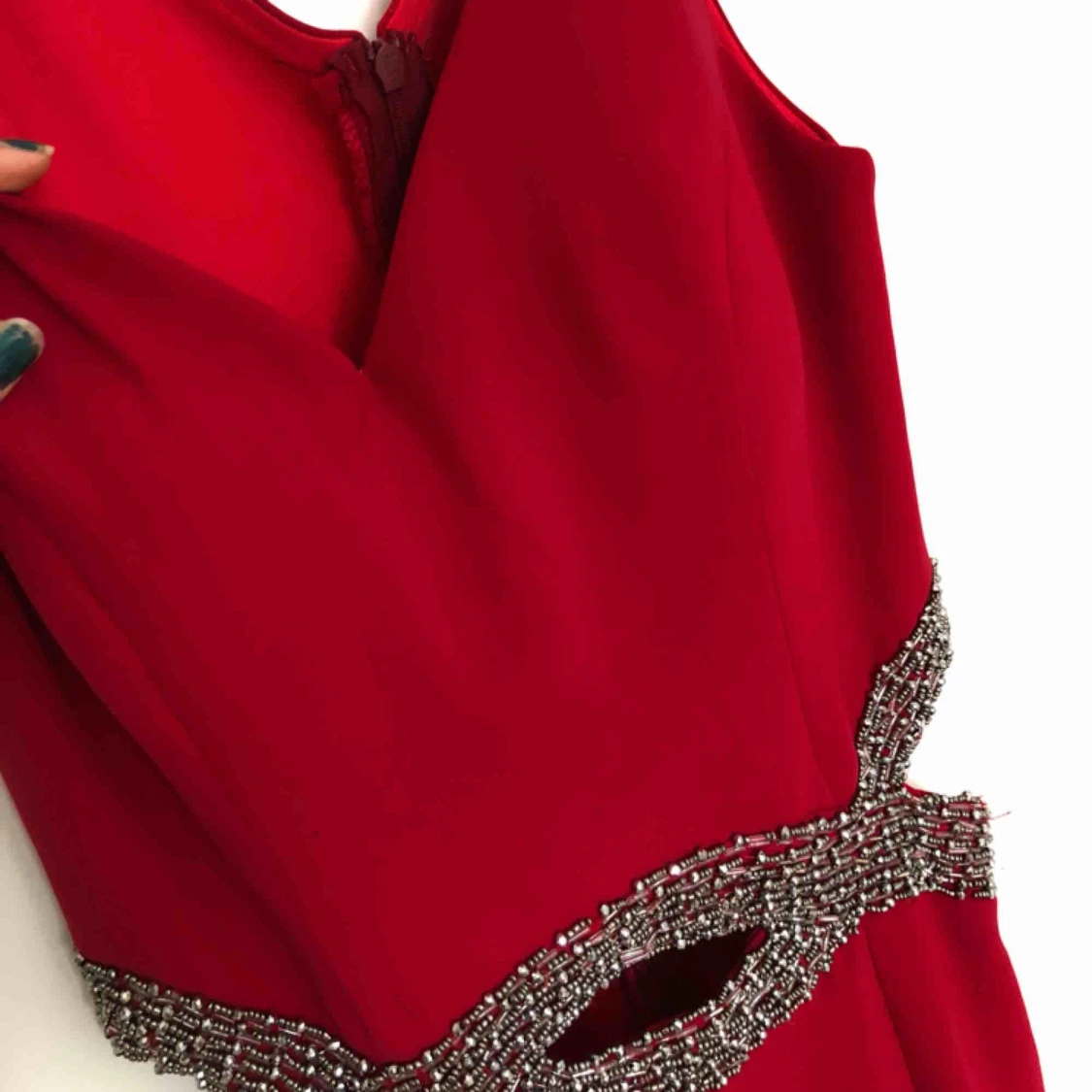 Festklänning, klarröd med detaljer vid midjan. Sjöjungfru- alltså fisk formgivare klänning