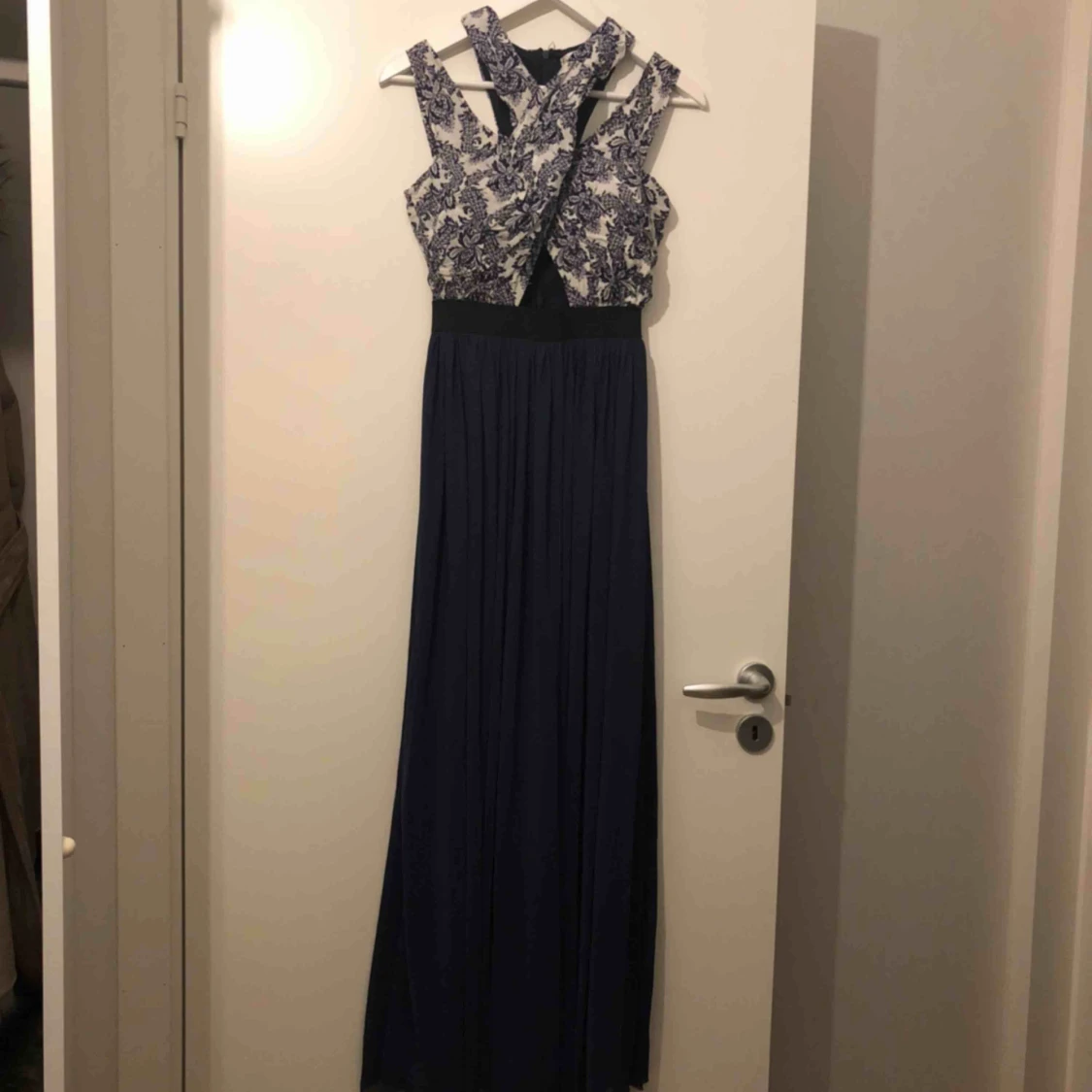 Säljer min fina balklänning som är använd vid 2 tillfällen. Strl 36 och den är uppsydd till min längd, 161cm. Använd med och utan klackar.