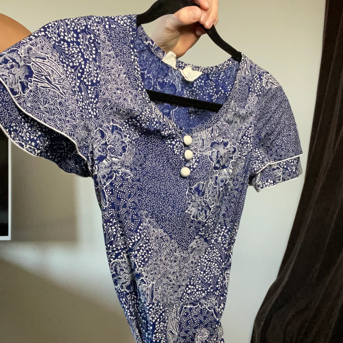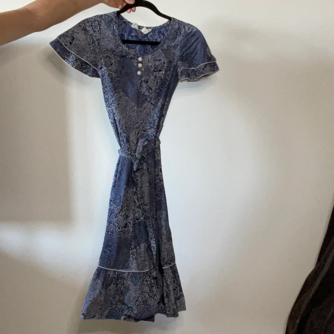 Väldigt söt klänning i 100 % bomull ! Sitter väldigt fint (kan ej visa bild då den är för liten för mig). Obs! Man ska inte ha breda axlar för denna klänning för att kunna röra sig fritt.