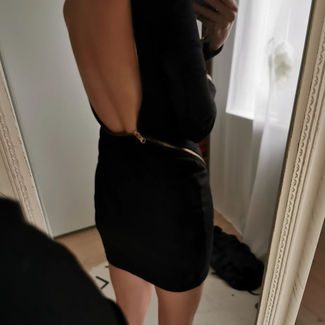 Klänning med öppen rygg från Nelly, Rebecca Stella. Storlek XS. Något nopprig i tyget, se bild 3. Köparen står för eventuell frakt, skickar med billigaste alternativet eller annat enligt önskemål ☺️