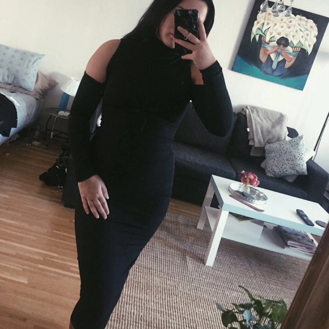 Sjuktfin klänning från Rebecca Stella, öppning i axlarna och slutar nedanför knäna! Passar mig som har s/m då den är stretchig! ✨