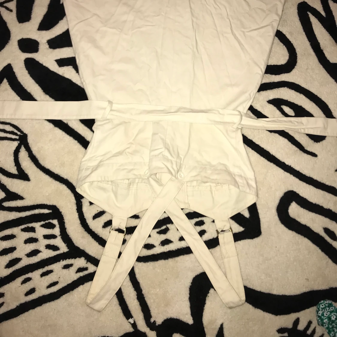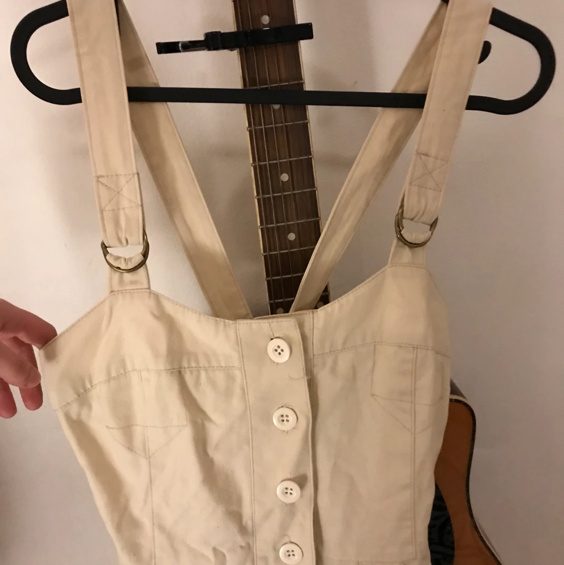 Krämvit retroklänning i jeans. Har x-rygg och band för midjan. En av mina absoluta favoritklänningar med den är dessvärre för liten. Köparen betalar frakt! Tar Swish