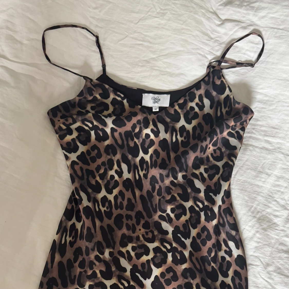 Snygg leopardmönstrad slipklänning från Rebecca Stella med tunna axelband och v-ringning. Klänningen ger en trendig look! Kontakta för frågor 🐆🐆🐆