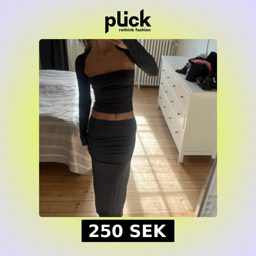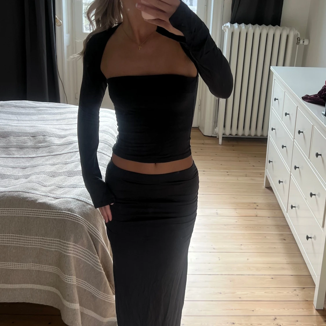 Ett set - kjol med ribbade sidor samt en bandeau topp med ärmar😍