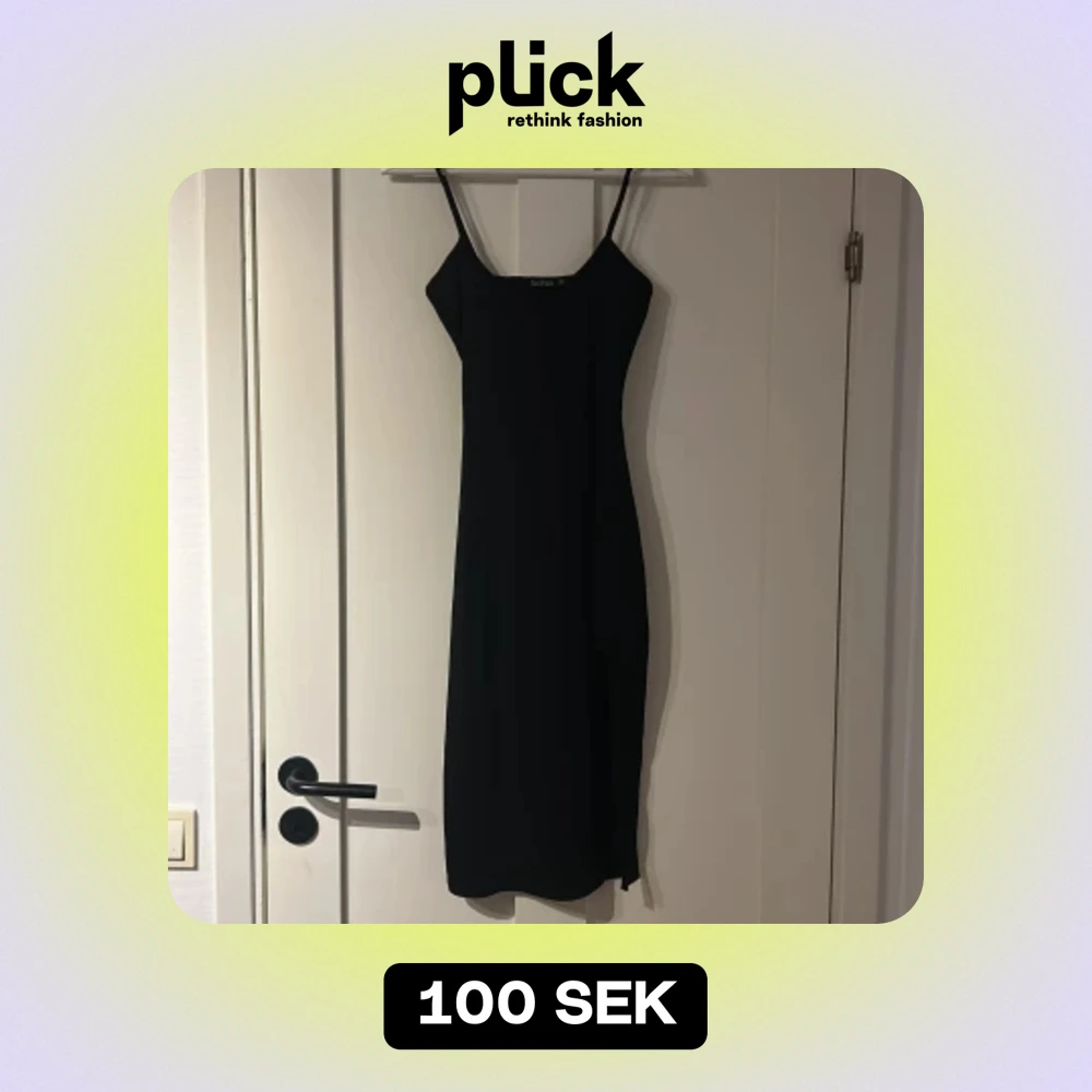 Ribbad svart klänning med slits. Slutar precis nedanför knäet