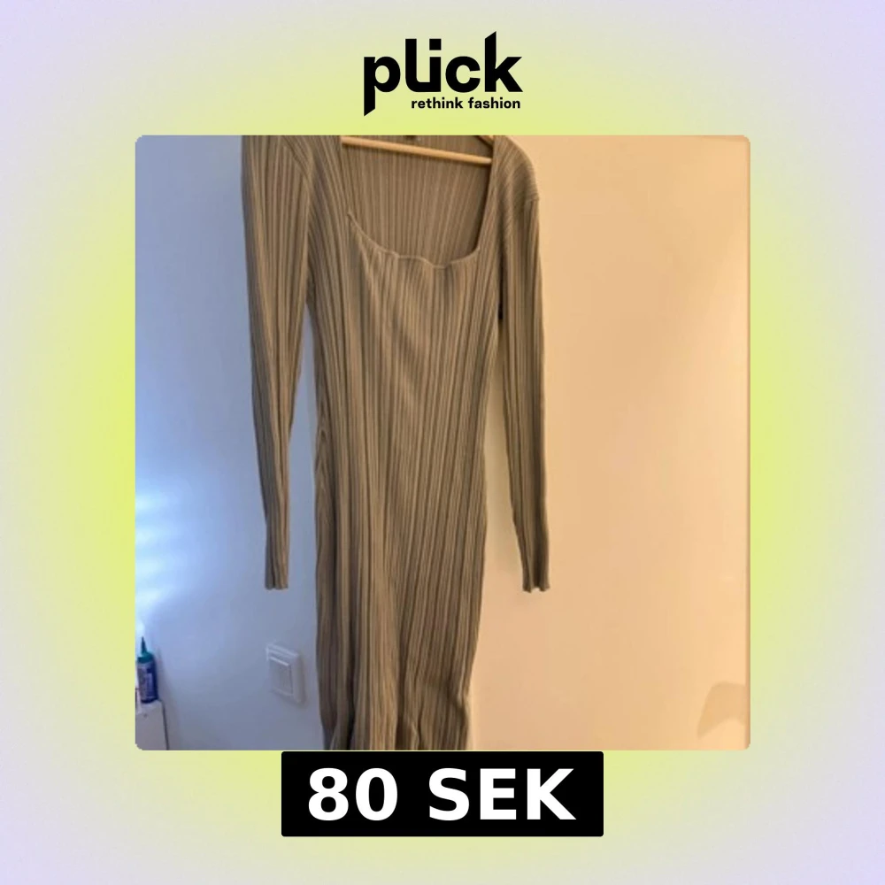 Säljer en stilren ribbad från H&M i en neutral färgton. Klänningen har en åtsittande passform med långa ärmar och en rundad halsringning. Perfekt för en chic och avslappnad look. Ganska stretchig och använd en gång under ett tillfälle❤️