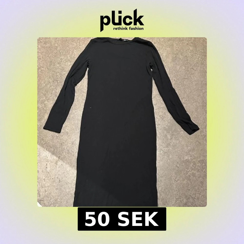 En stilren svart ribbad långärmad klänning med rak passform och rund halsringning. Från lager 157 i storlek L. I princip aldrig använd . Säljer för 50kr