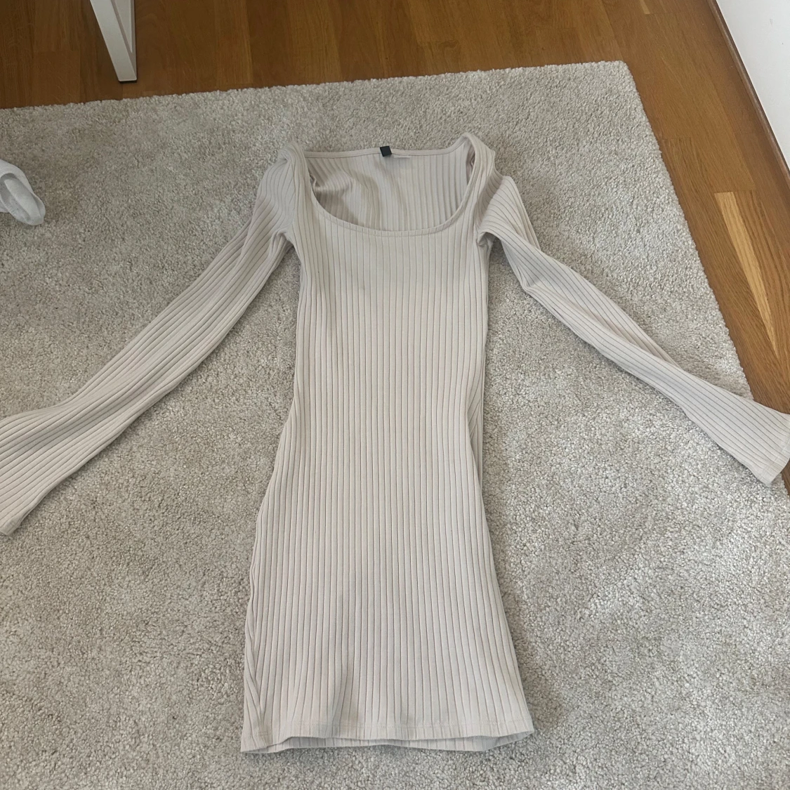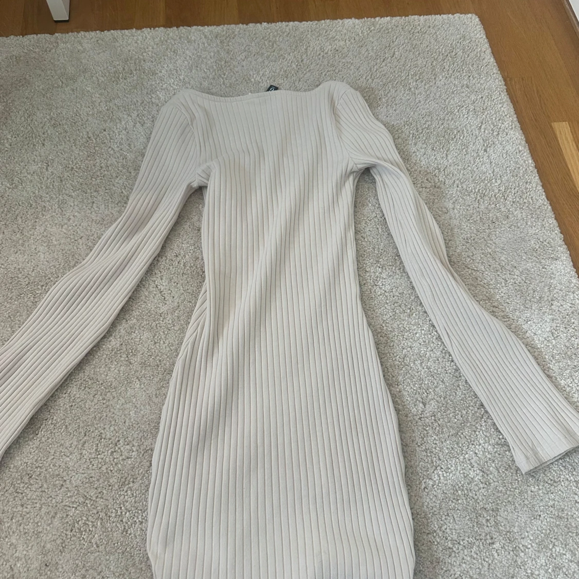 Supersnygg ribbad vit kortklänning från H&M Divided. Klänningen har lång ärm, tight passform och rundad urringning. Perfekt för dig som gillar en enkel men trendig stil. Materialet är mjukt och stretchigt, vilket gör den riktigt bekväm.