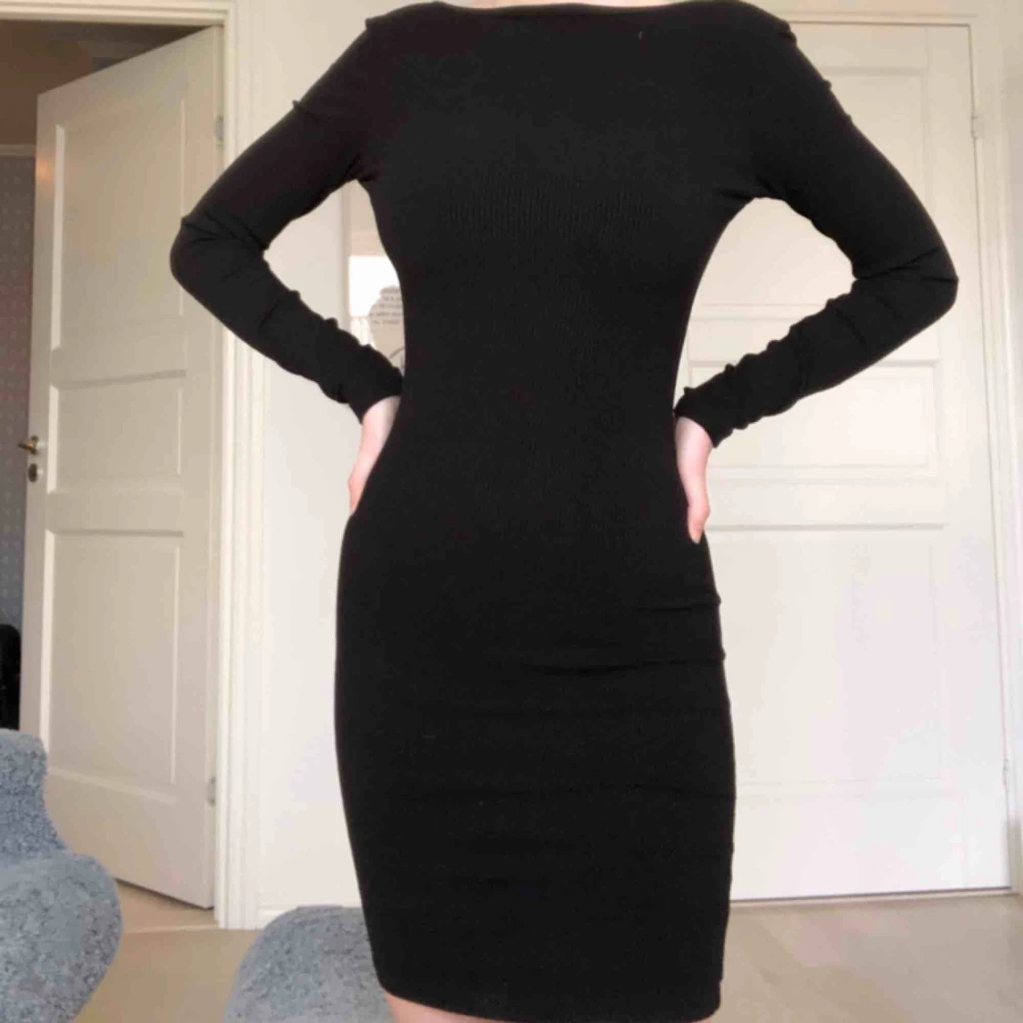 Svart ribbad klänning med öppen rygg. Bra skick! Frakt tillkommer🥰