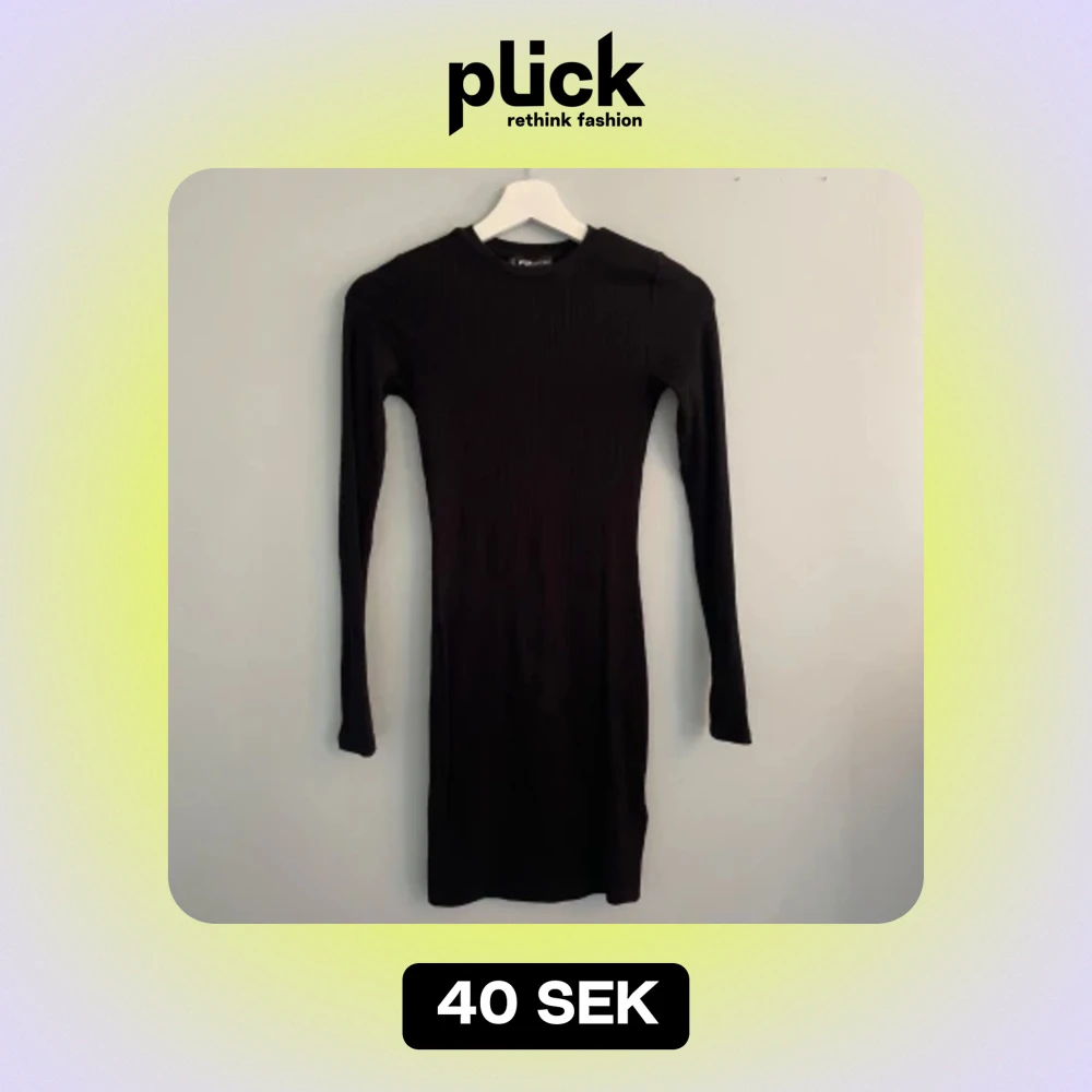 Knälång, tajt och stretchig klänning i svart ribbstickat tyg. Klänningen är i bra skick!💞